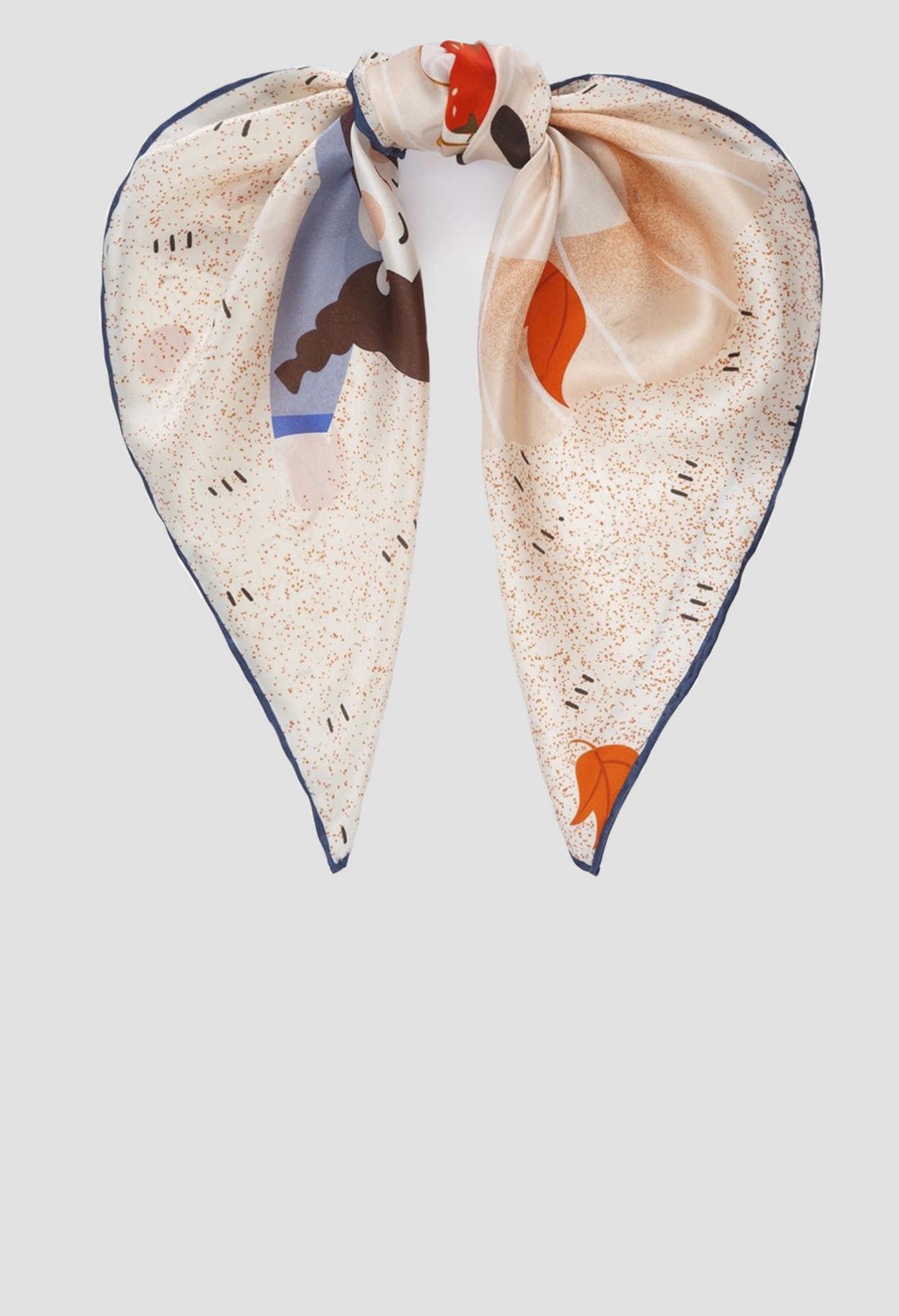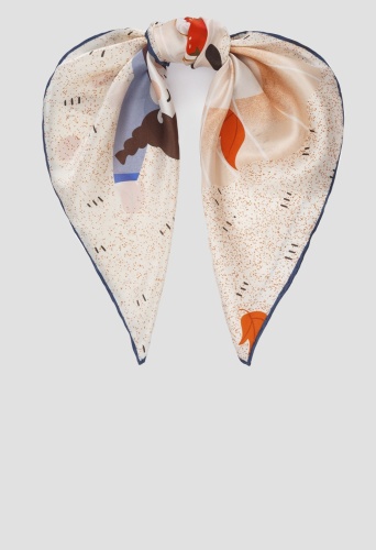 Платок с принтом из 100% шёлка. Тип плетения: Сатин. Размер: 53х53 см. Ручная подгибка.