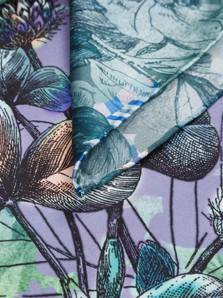 Платок с принтом из 100% шёлка. Тип плетения: Сатин. Размер: 53х53 см. Ручная подгибка.