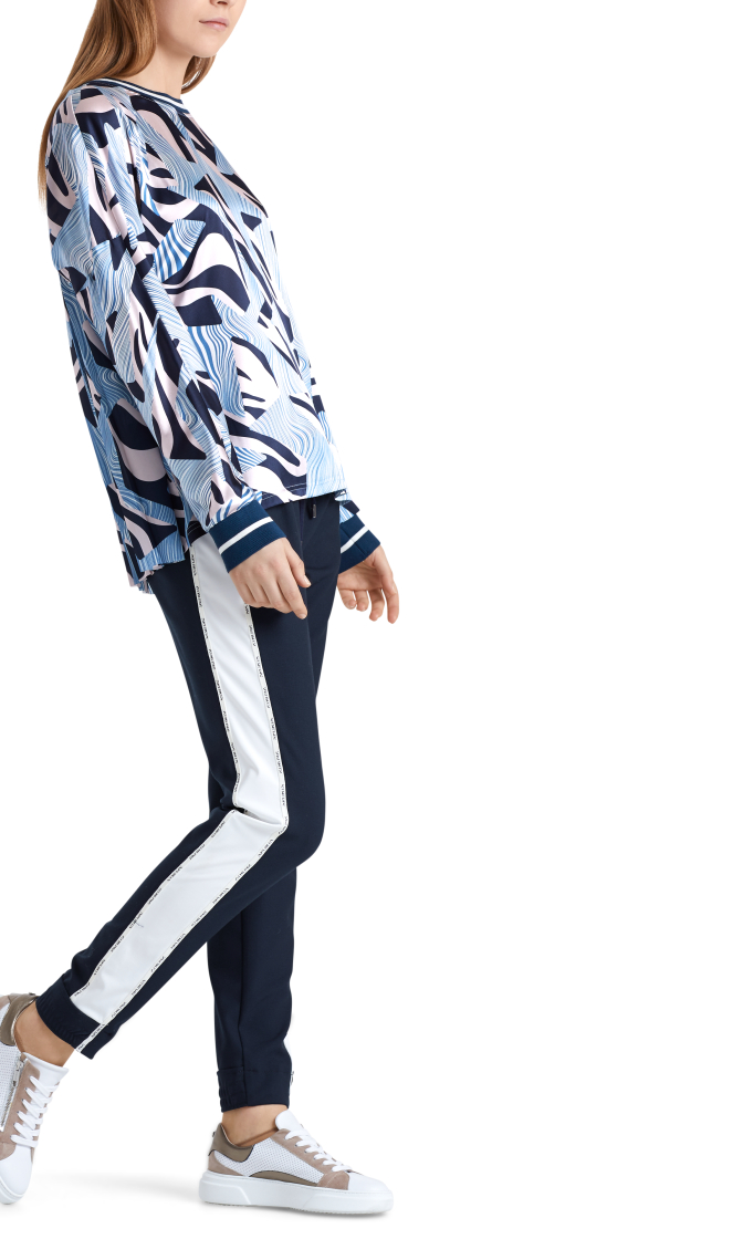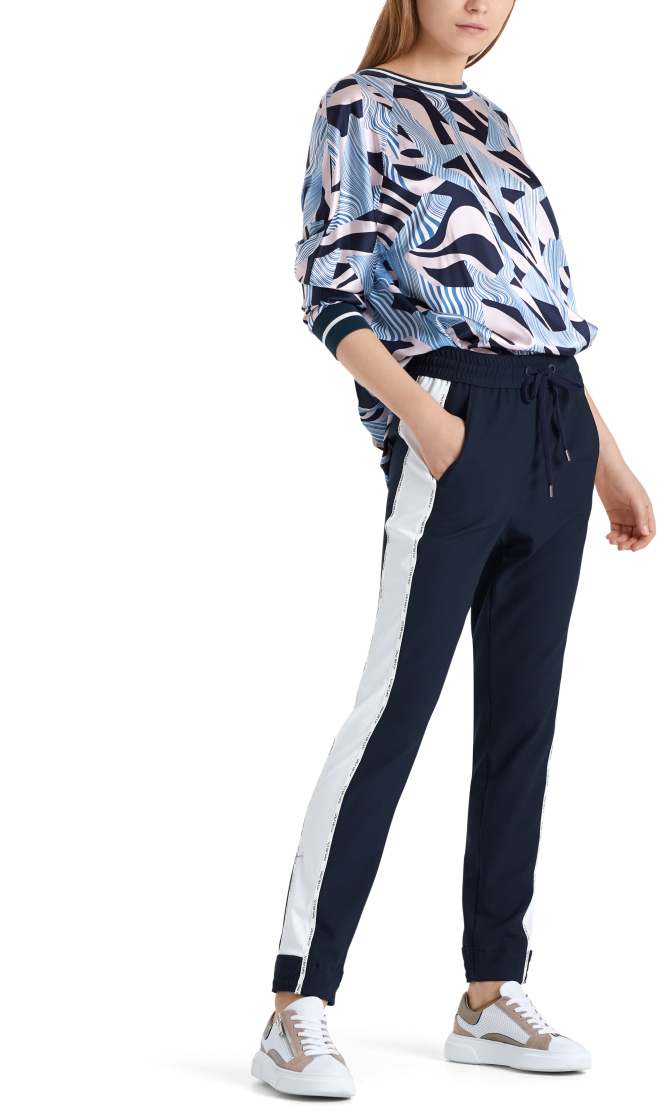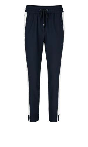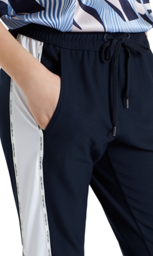 Брюки в спортивном стиле. Средняя посадка, силуэт slim, эластичная лента и кулиска на талии, карманы спереди, декоративные вставки контрастного цвета по бокам. Эта модель - отличный выбор для тех, кто придерживается активного образа жизни!