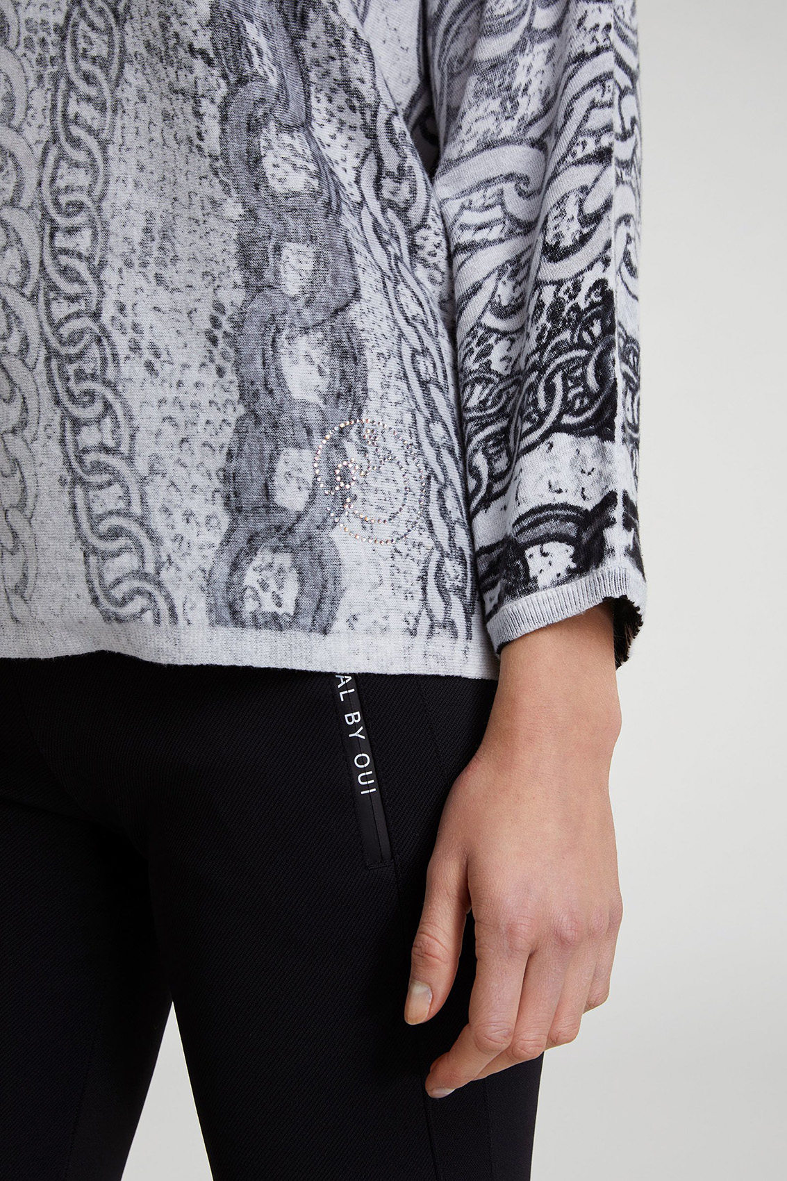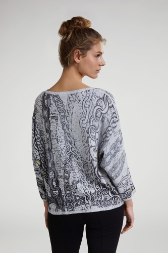 Этот джемпер непременно обратит на себя внимание благодаря необычному принту. Джемпер прямого покроя, горловина-лодочка, длинные рукава. Хлопковый материал приятен к телу и обеспечивает комфорт. В сочетании с лаконичным низом джемпер создает стильный современный образ.