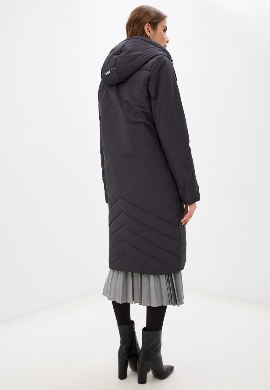 Темно-серое длинное пальто с капюшоном, застёгивающееся на молнию. Накладные карманы и декоративная светлая окантовка на них и капюшоне добавляют изделию особый шарм. Высококачественный материал обеспечивает комфорт и тепло, делая этот элемент гардероба идеальным выбором для холодной погоды.