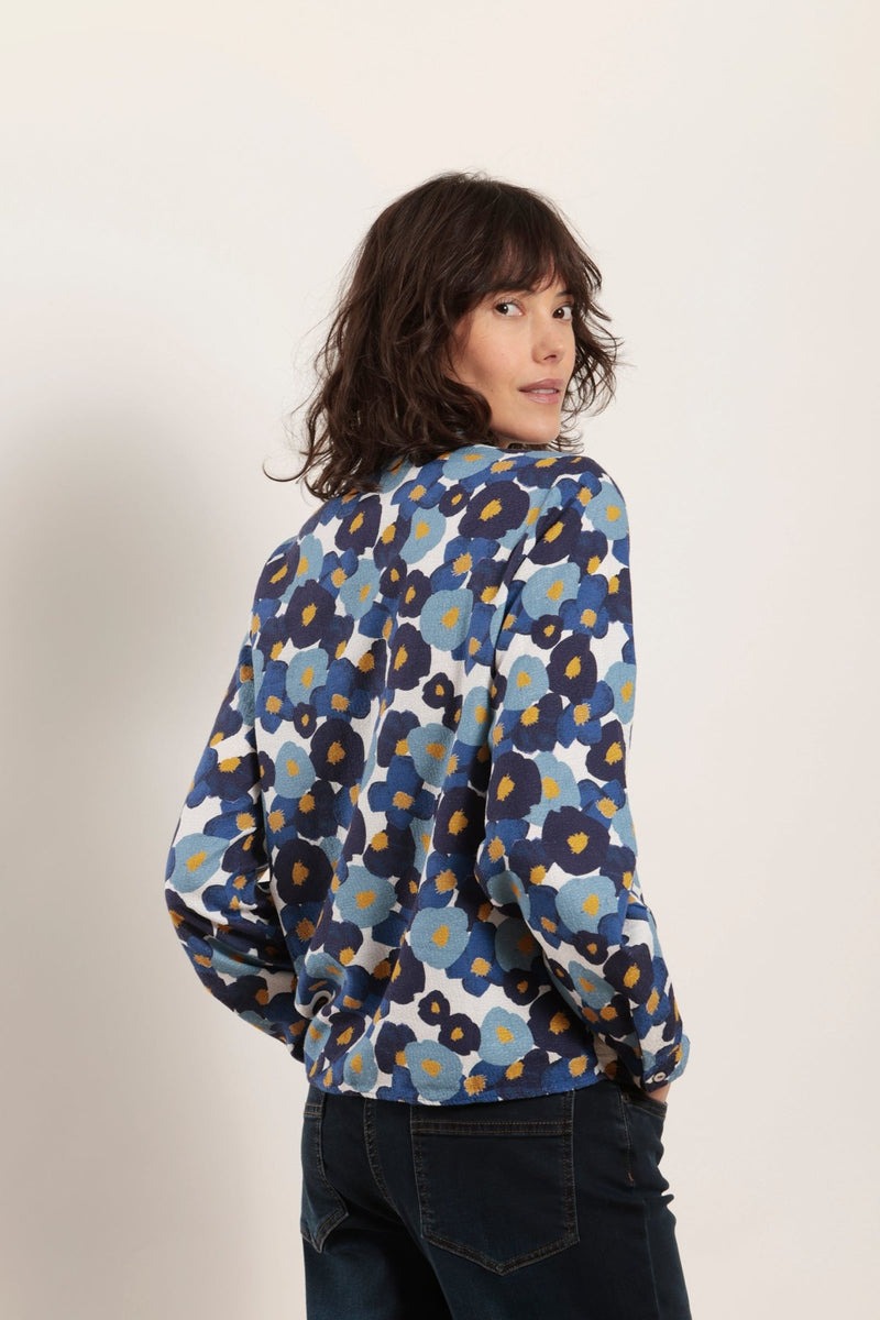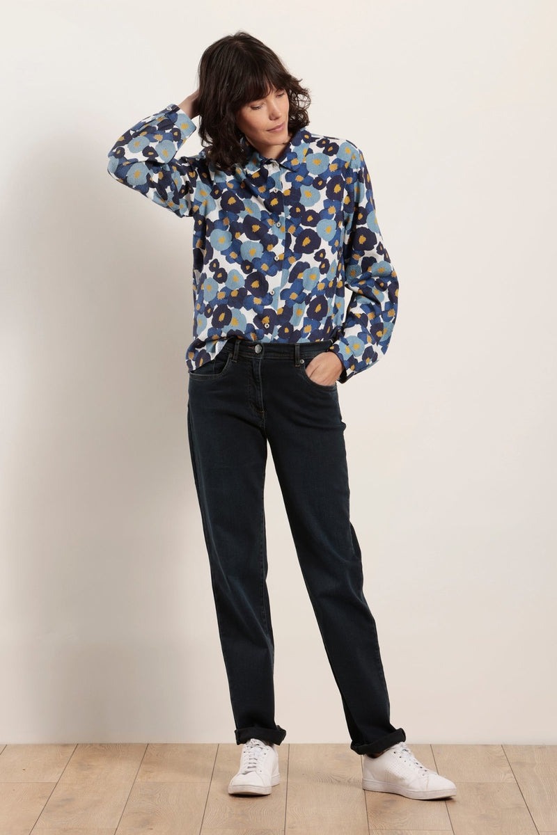 Рубашка с цветочным принтом из тисненого хлопка. Прямого покроя. Длинные рукава с небольшими манжетами. Нижние передние вытачки.