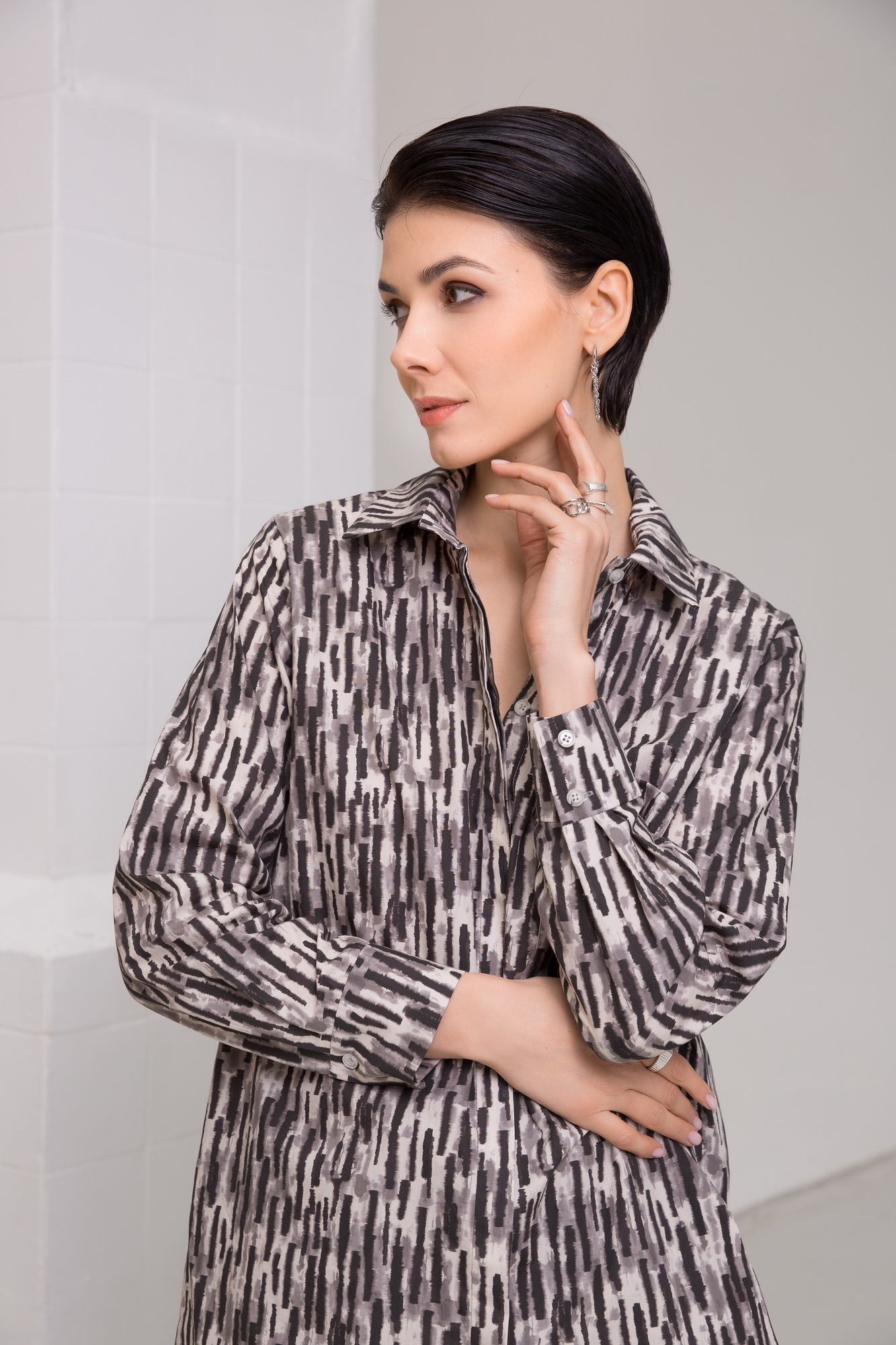 Блуза-рубашка из французского хлопка с принтом туманный граттаж.