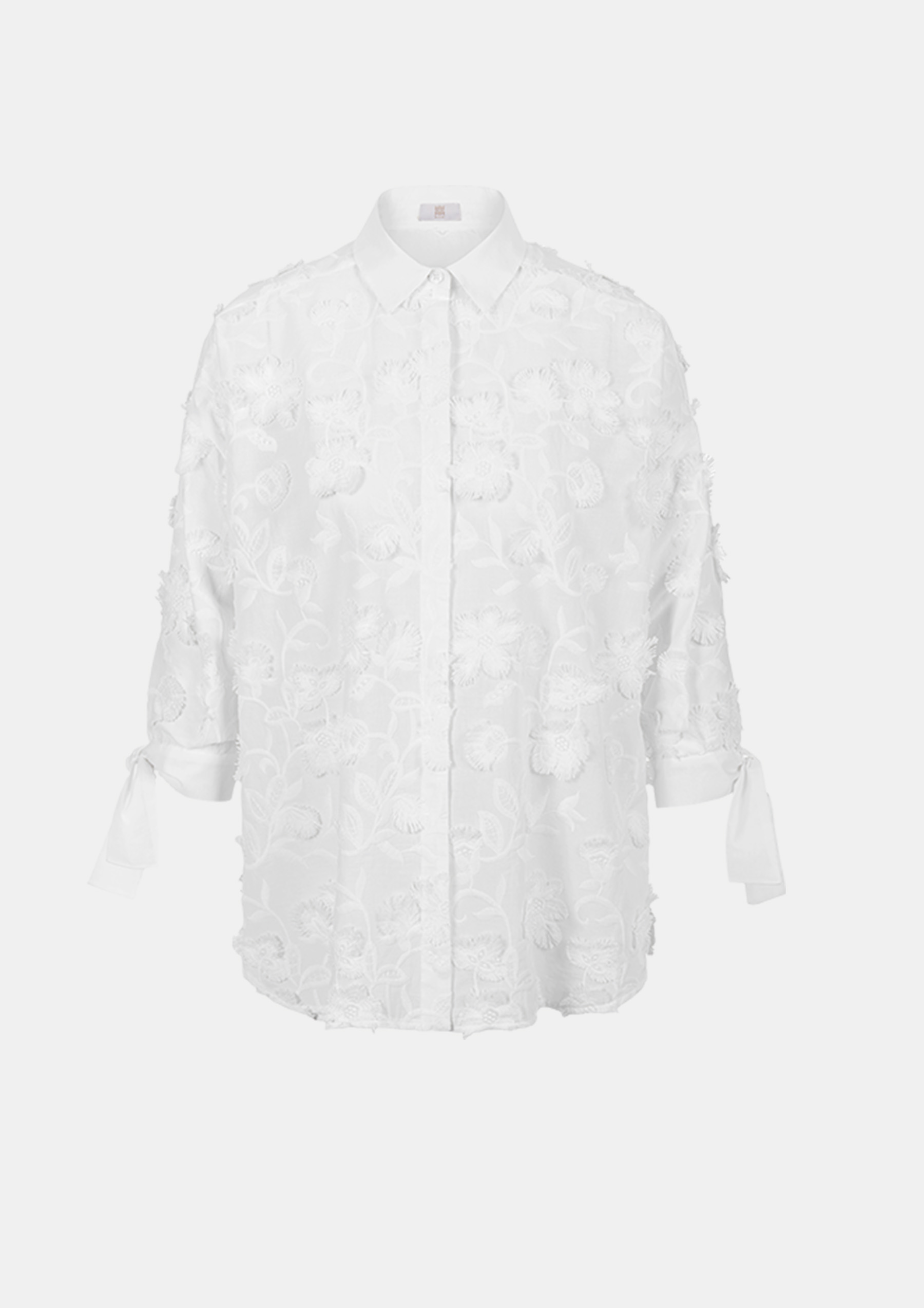 Повседневный стиль рубашки сочетается с очаровательным цветочным декором и модными деталями на рукавах. Замысловатая вышивка цветов, листьев и завитков делает эту блузку из тонкого хлопкового батиста настоящей приманкой для глаз.