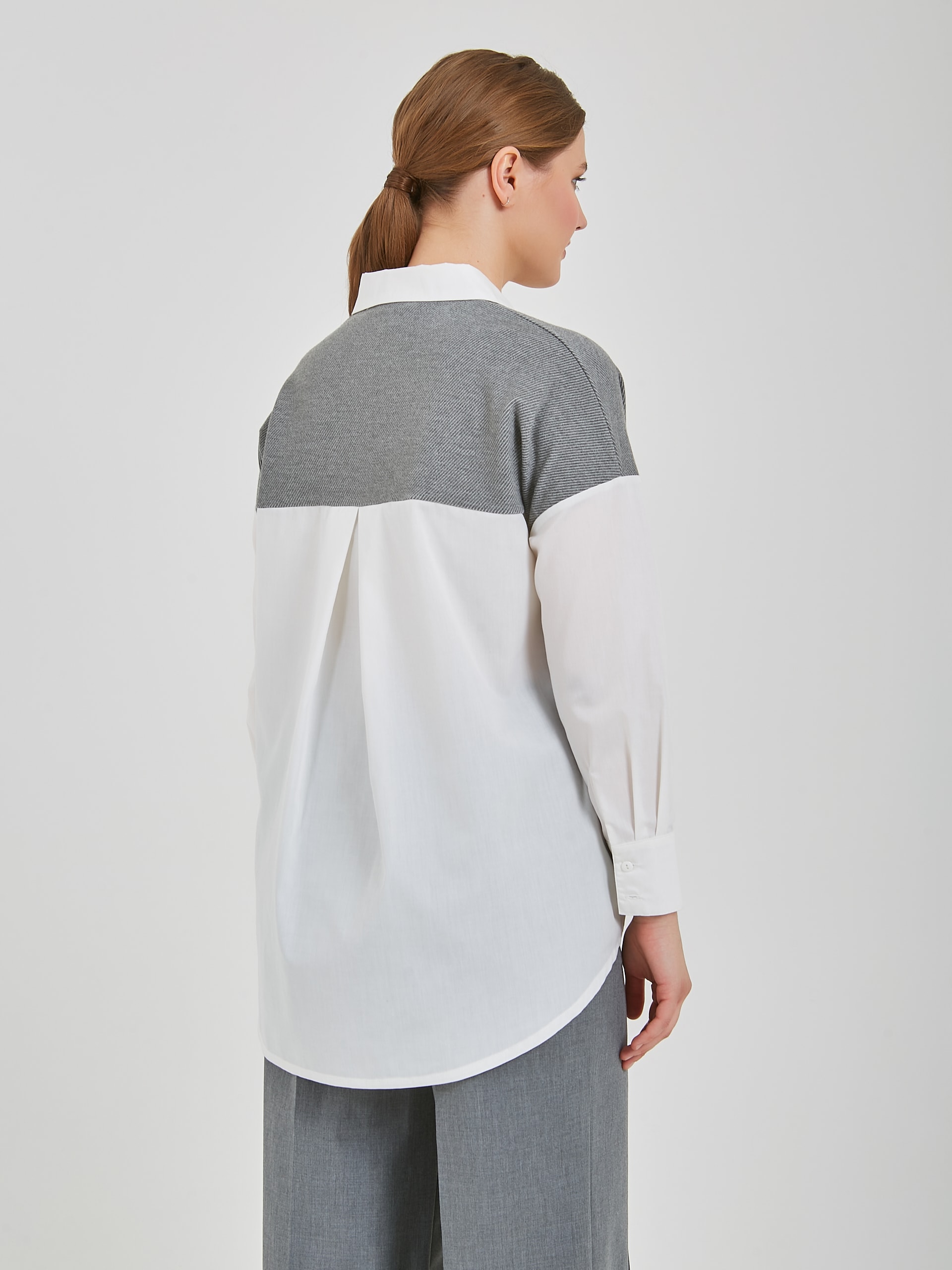 Оригинальная рубашка из комбинированной ткани, прямого силуэта с накладним карманом на груди. Осень-Зима'25/26. Капсула "Вишневый сад"