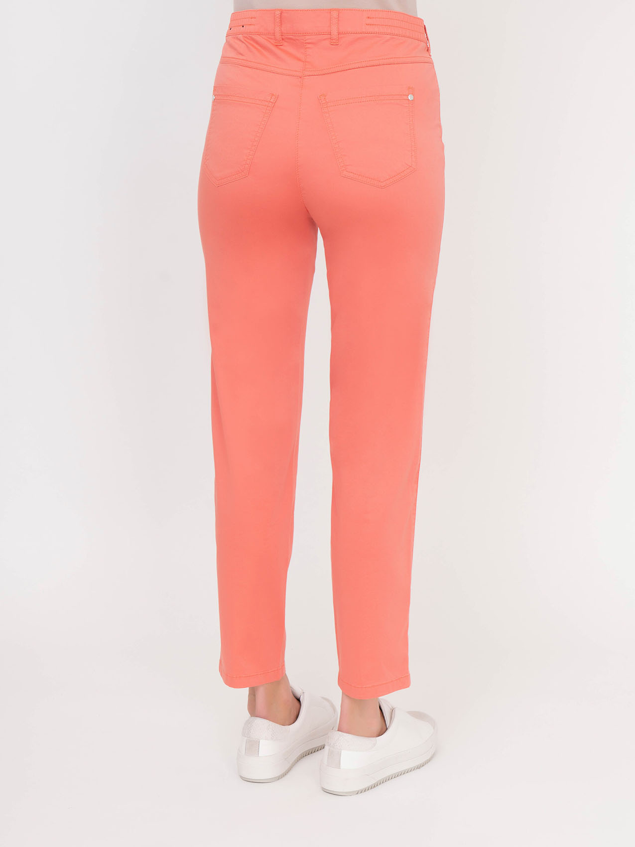Яркий цвет этих брюк навевает мысли об отдыхе в теплых странах. Средняя посадка, прямой покрой, карманы. Эта модель прекрасно смотрится как с футболками, так и с блузами.