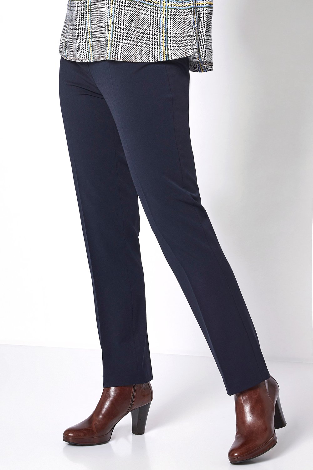 Классические прямые брюки - универсальный вариант низа для повседневных и деловых образов! Удобная средняя посадка с эластичным поясом, застежка-молния спереди, карманы спереди. Стрелки визуально вытягивают силуэт.