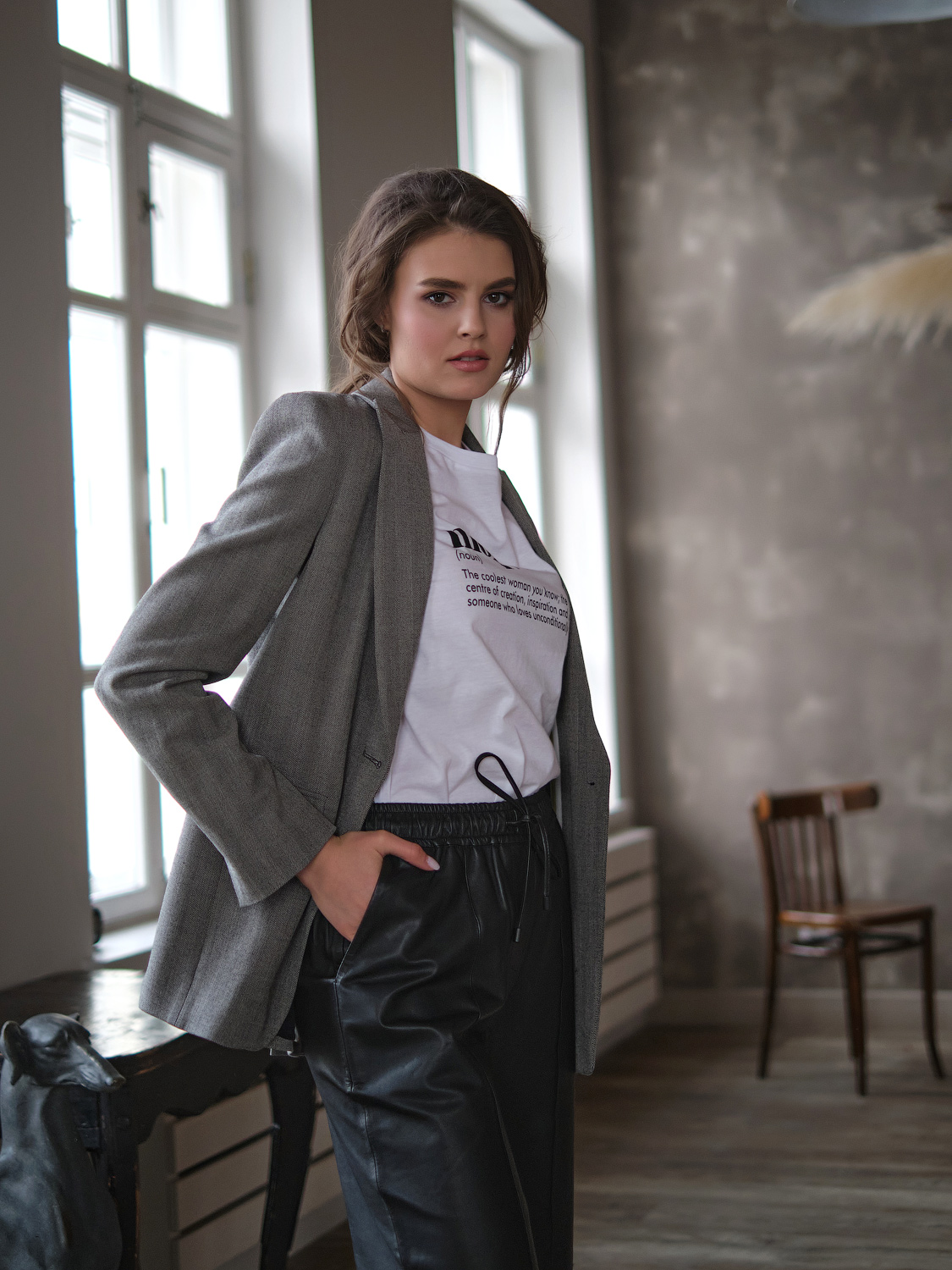 Экстравагантные кожаные шорты могут стать яркой акцентной деталью в совокупности со сдержанным верхом. Смелый и невероятно стильный атрибут гардероба по-настоящему стильной женщины. Свободный силуэт, длина до колена, эластичный пояс на кулиске.
