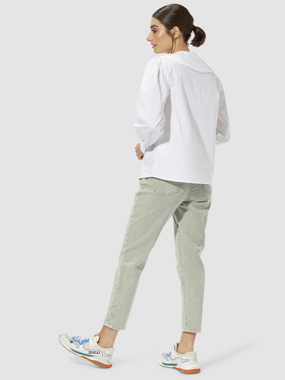 Укороченные джинсы в актуальной оливковой расцветке. Свободный крой с высоким поясом подчеркнет вашу талию. Пояс со шлевками, застежка на скрытую молнию и пуговицу. Внутренние передние и задние накладные карманы.