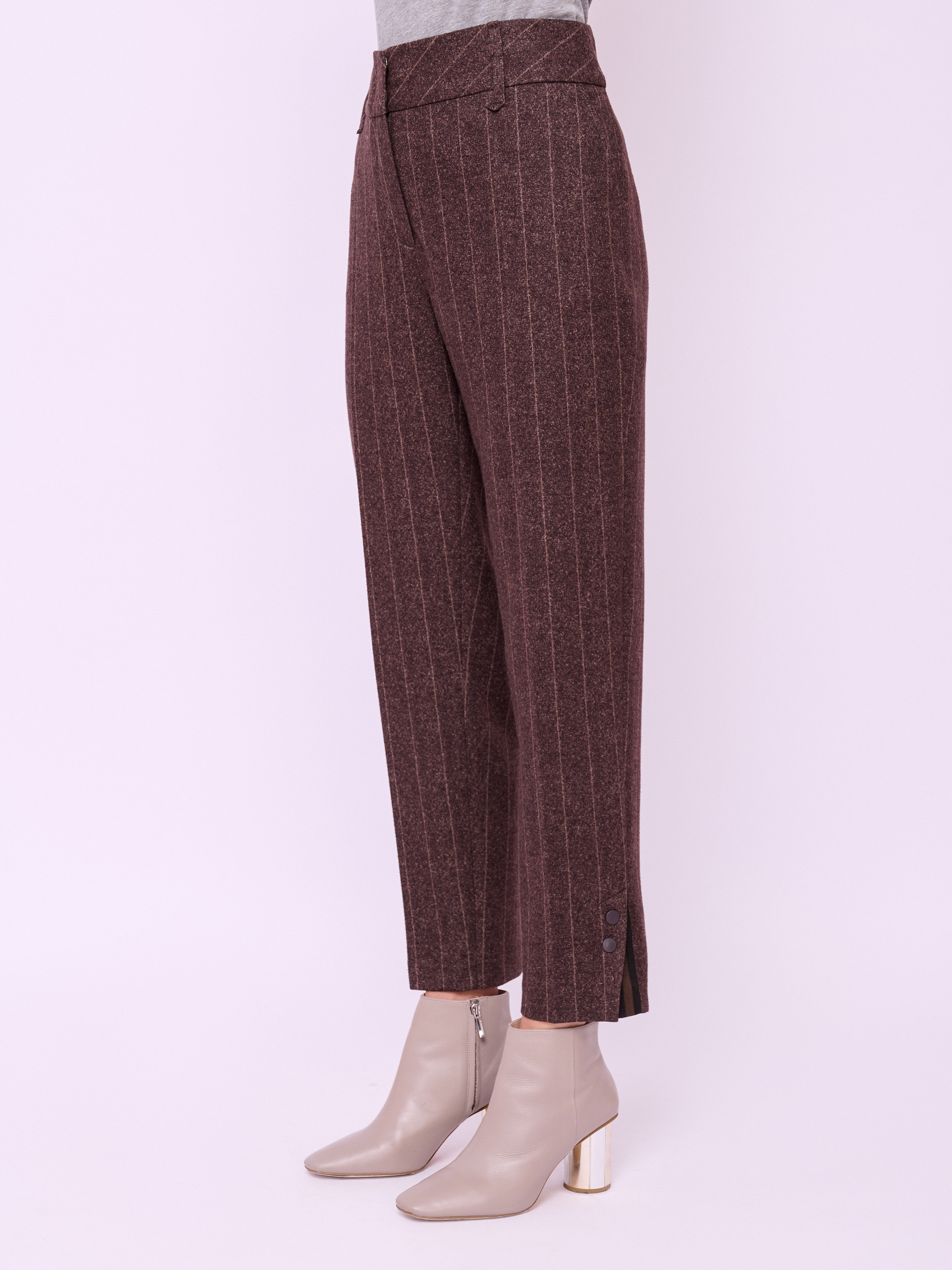 Зауженные брюки из мягкого сукна в полоску на молнии с косыми карманами и шлевками на поясе. Длина брючин: 74 см.