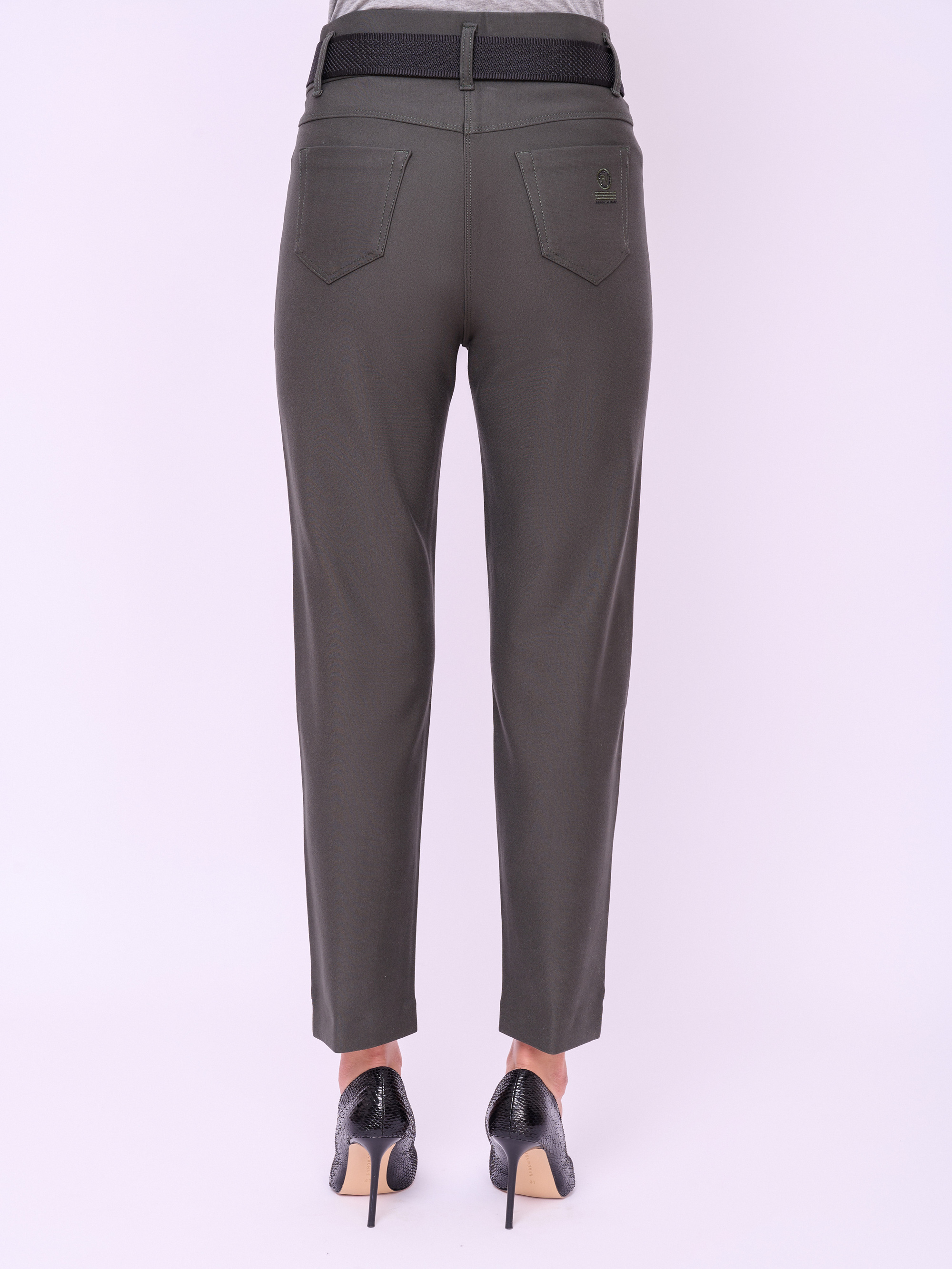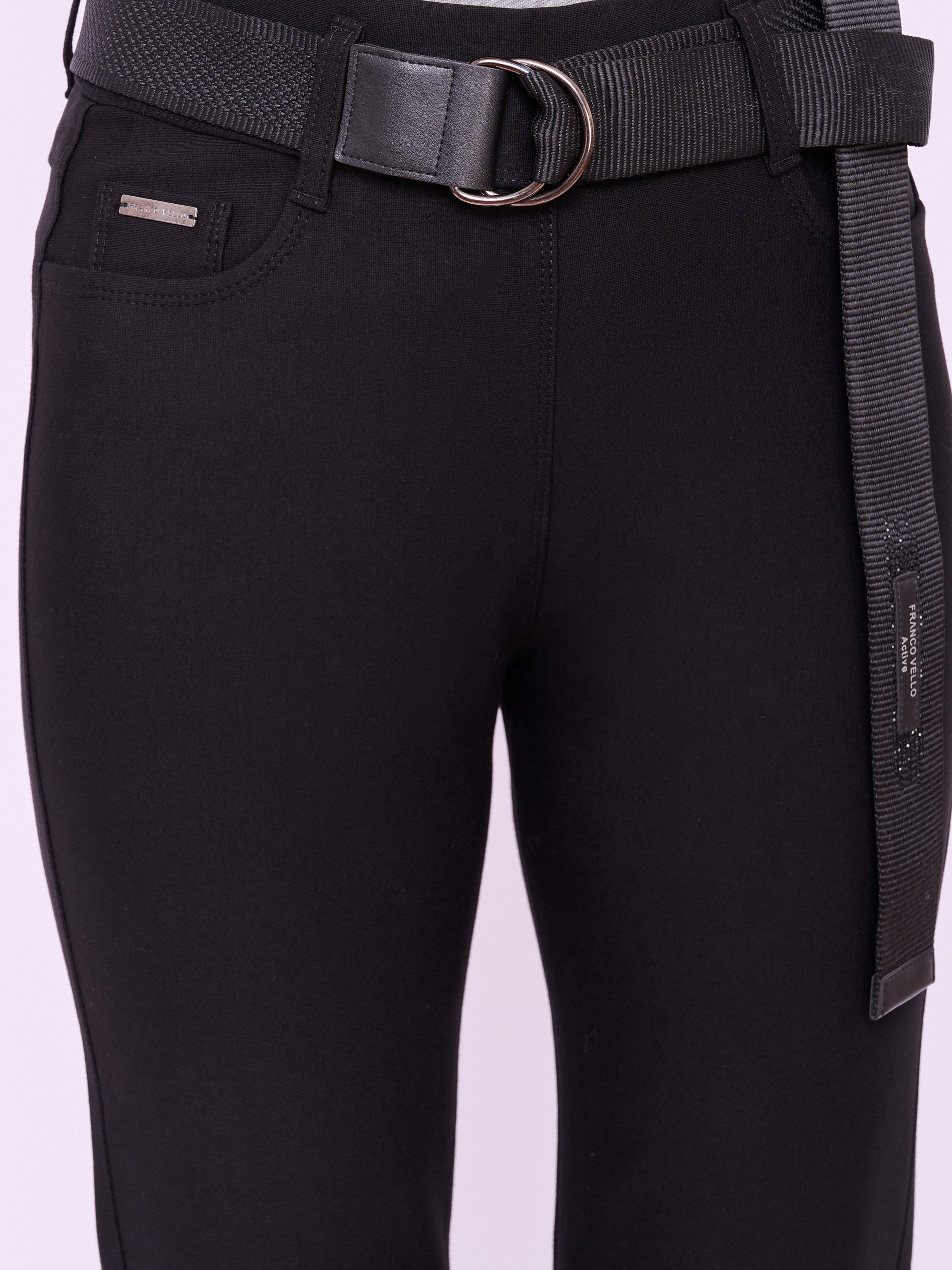 Детали: без застежки, без рисунка, без карманов, крой брючин зауженный, посадка средняя, боковые разерзы, вышивка со стразами, текстильный ремень. Длина брючин: 69 см.