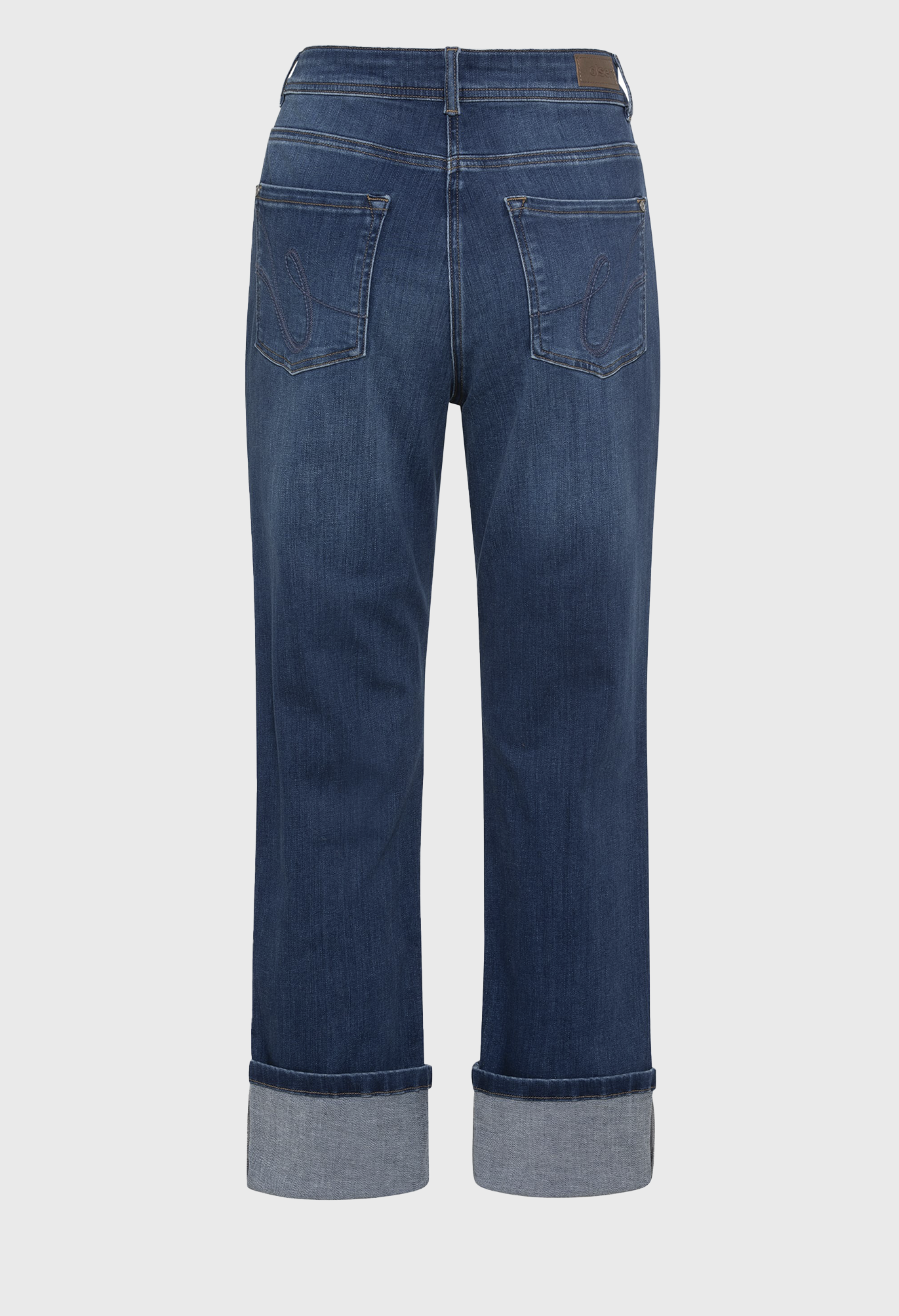 Классический крой с пятью карманами в современном исполнении благодаря нежной потертости и стильному подвороту, который выглядит актуально. Задние карманы украшены вышивкой, а эластичный материал обеспечивает удобство ношения в течение всего дня. Наш крой Mona не сковывает движений бедер и располагается прямо на естественной линии талии, удлиняя ноги.