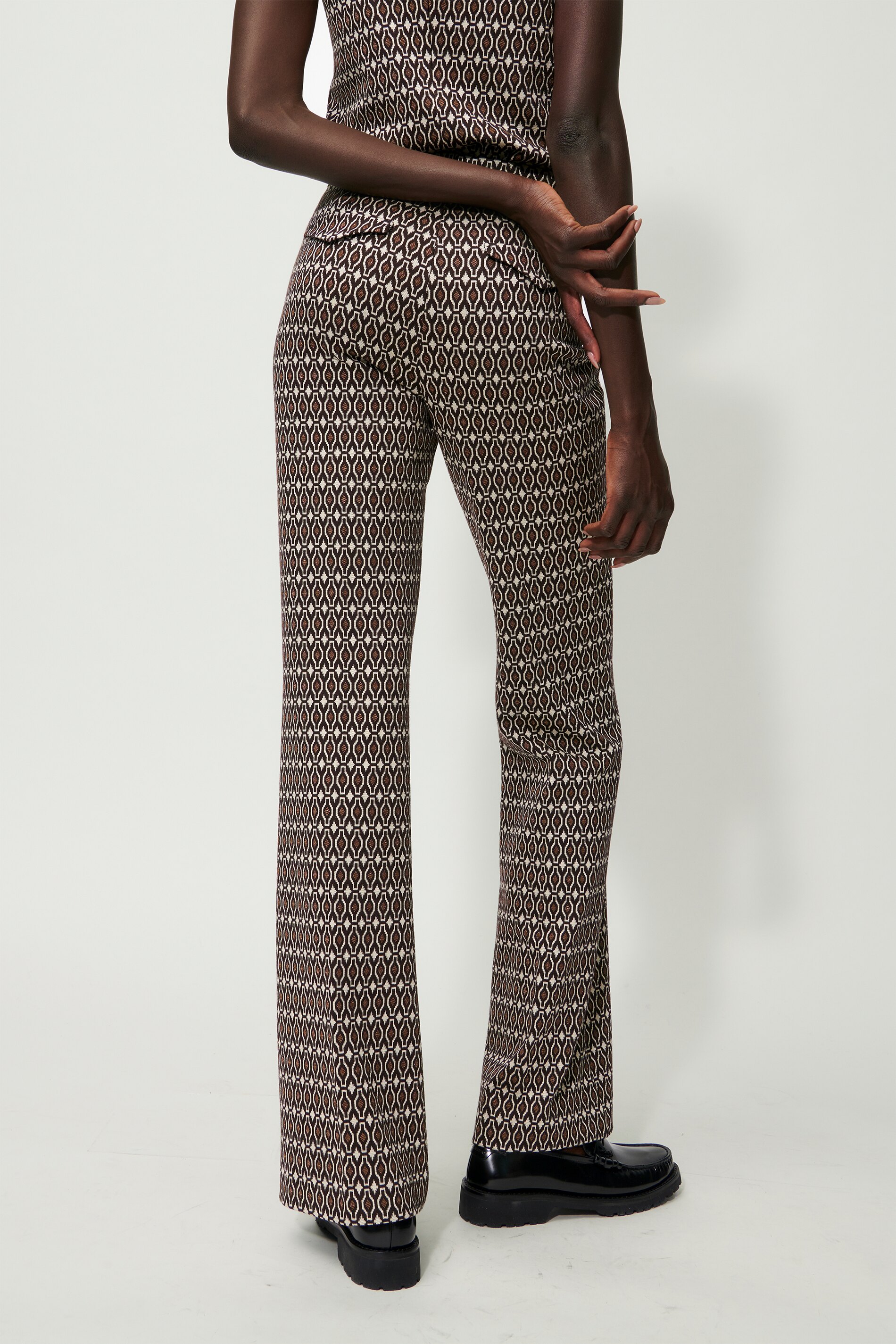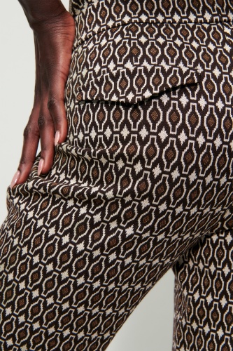Элегантные расклешенные брюки из мягкого жаккардового джерси с эффектом блесток. Пояс и эластичный материал делают эти брюки особенно удобными.