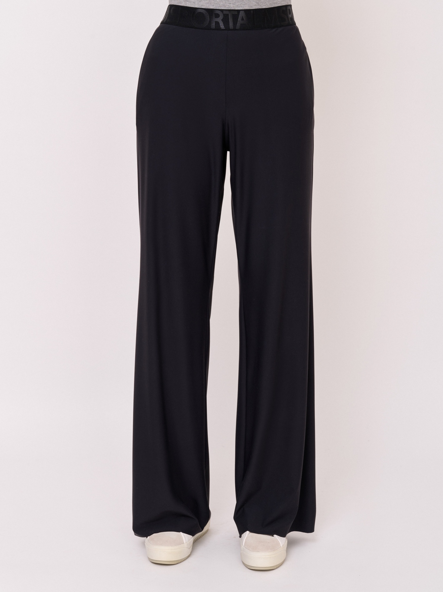 Детали: без застежки, пояс на резинке, без рисунка, карманы в шве, крой брючин широкий, посадка средняя. Длина брючин: 91 см.