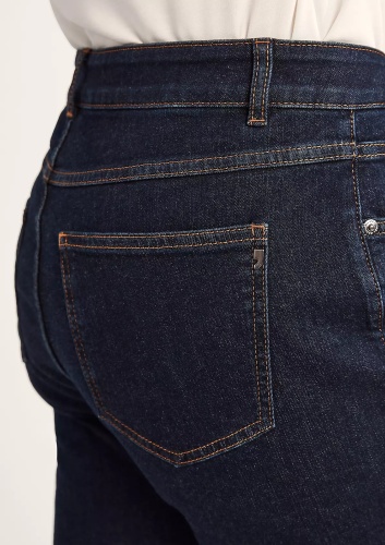 Темные однотонные джинсы-клеш с высокой посадкой. Без декоративных потертостей и складок. Классические пять карманов, притачной пояс со шлевками. Трендовая модель джинсов для создания актуального образа! Хорошо сочетаются с заправленной рубашкой или джемпером.