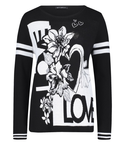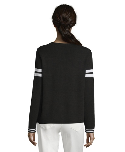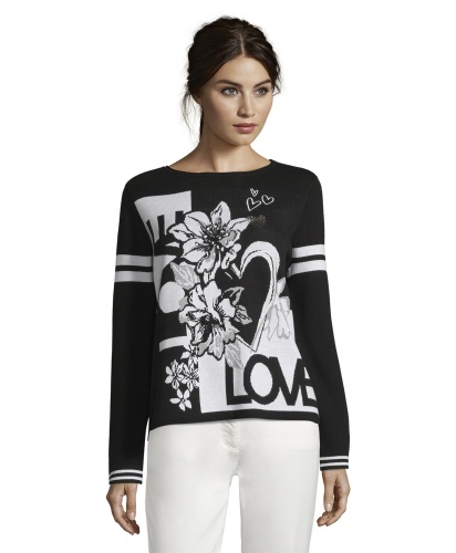 Необычное сочетание цветов, надписи и полоски, и все в одной вещи! Поэтому черно-белый дизайн совсем не выглядит скучно. Джемпер прямого покроя с длинными рукавами и вырезом горловины "лодочка". Материал из хлопково-вискозной смеси приятен к телу и обеспечивает комфорт. Этот джемпер - отличный выбор для прогулки прохладным летним вечером.