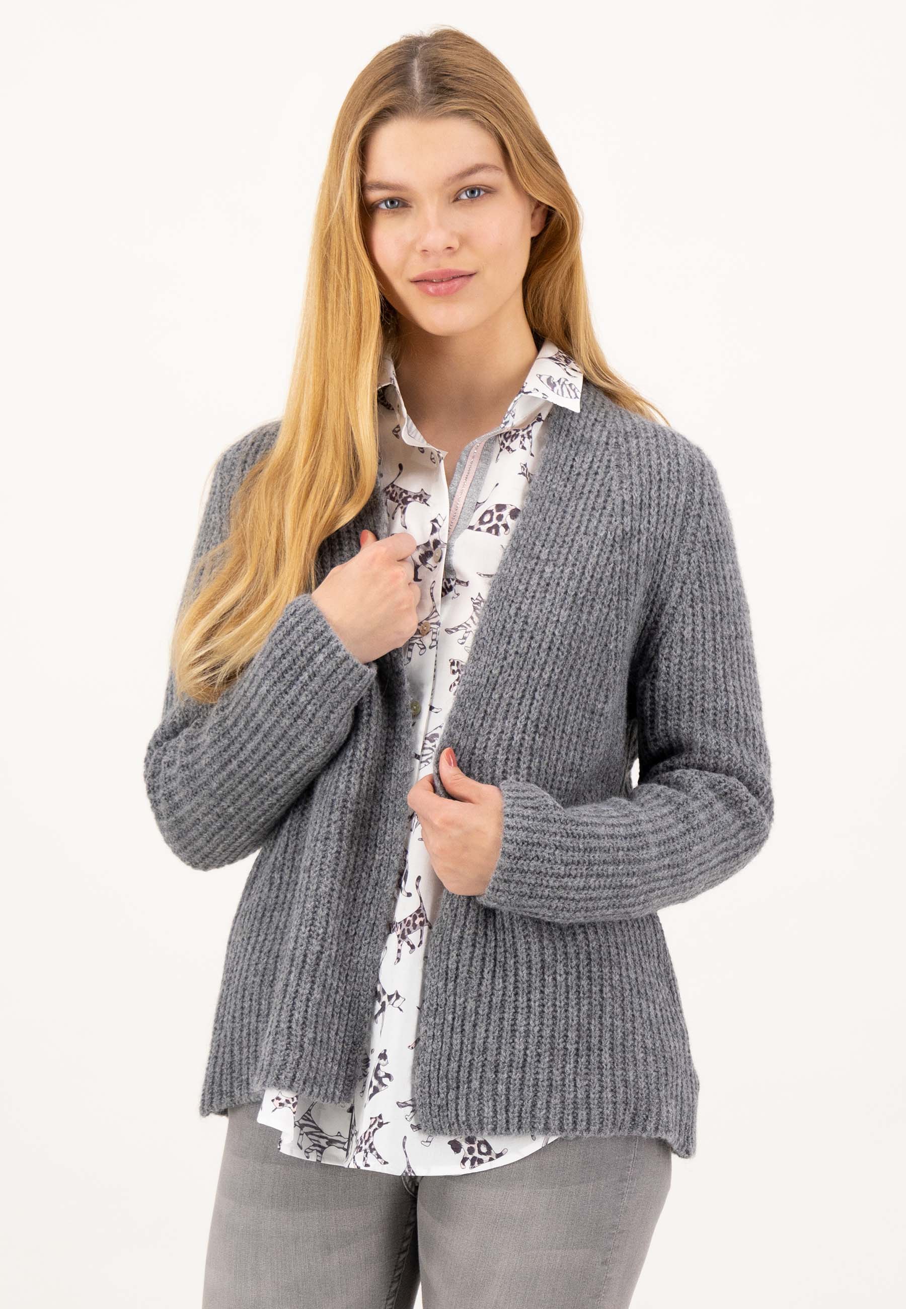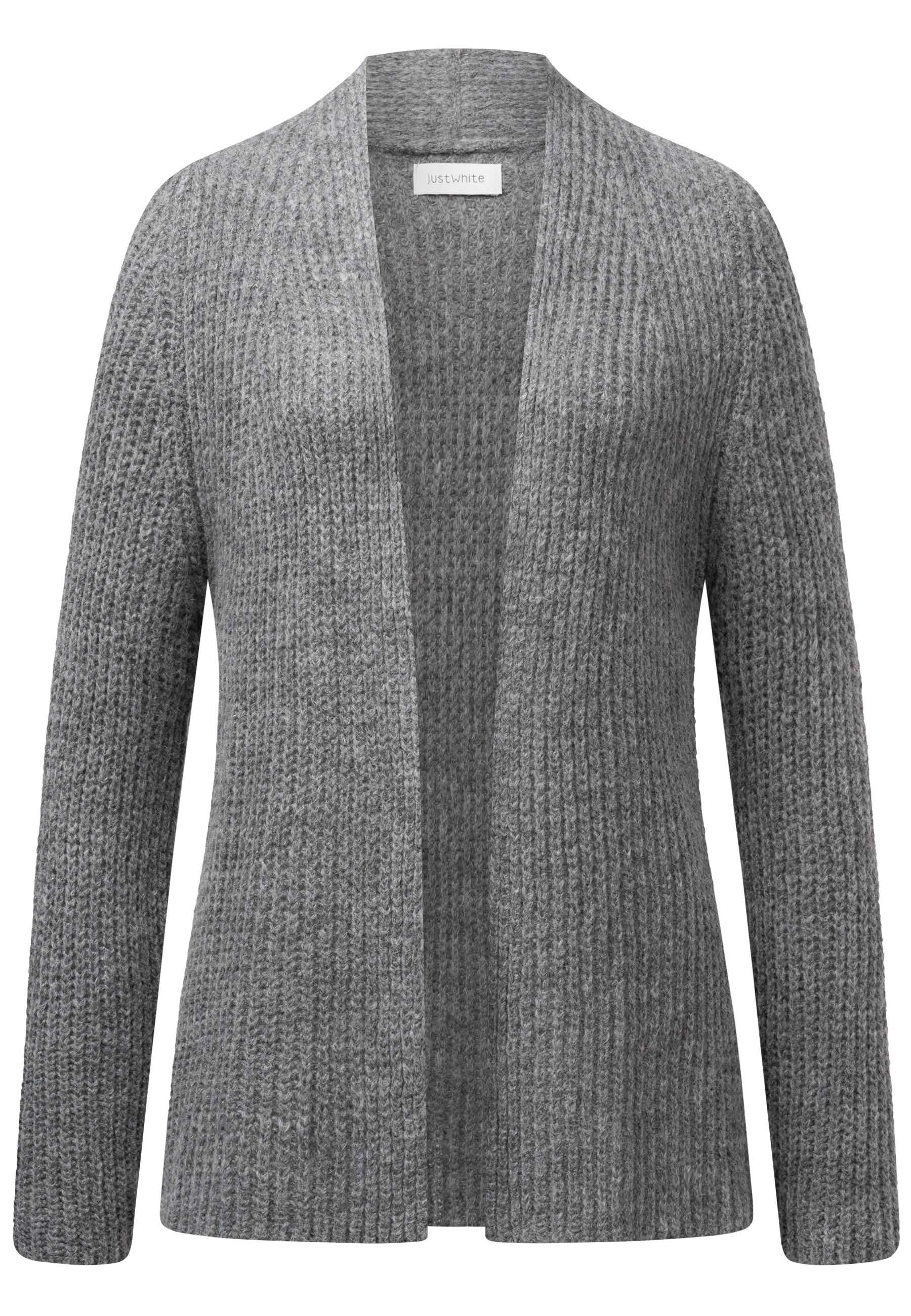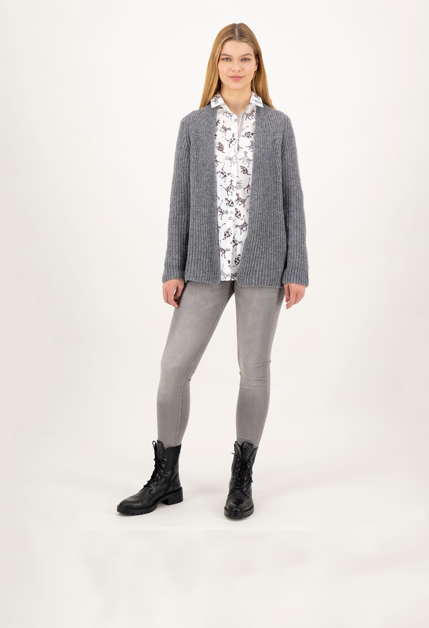 На сайте указаны российские размеры. Уютный кардиган белого цвета. Приталенный шалевый воротник, длинные рукава и асимметричный вязаный фасон придают открытому кардигану современный вид. Приятная мягкая базовая вещь нежного белого цвета должна присутствовать в любом гардеробе. Наша модель ростом 177 см. Измерения для 44 размера: Окружность груди: 50 см Бедра: 59 см Длина спинки: 65 см. Длина рукава: 78 см.