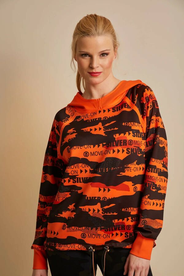 На сайте указаны российские размеры. Повседневная толстовка с камуфляжным принтом по всей поверхности.