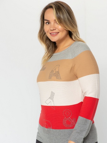 Стильный джемпер обращает на себя внимание благодаря контрастной расцветке и декору стразами. Другие детали дизайна - прямой покрой, круглый вырез горловины, рукава реглан полной длины. Материал из хлопковой смеси приятен к телу и прост в уходе.