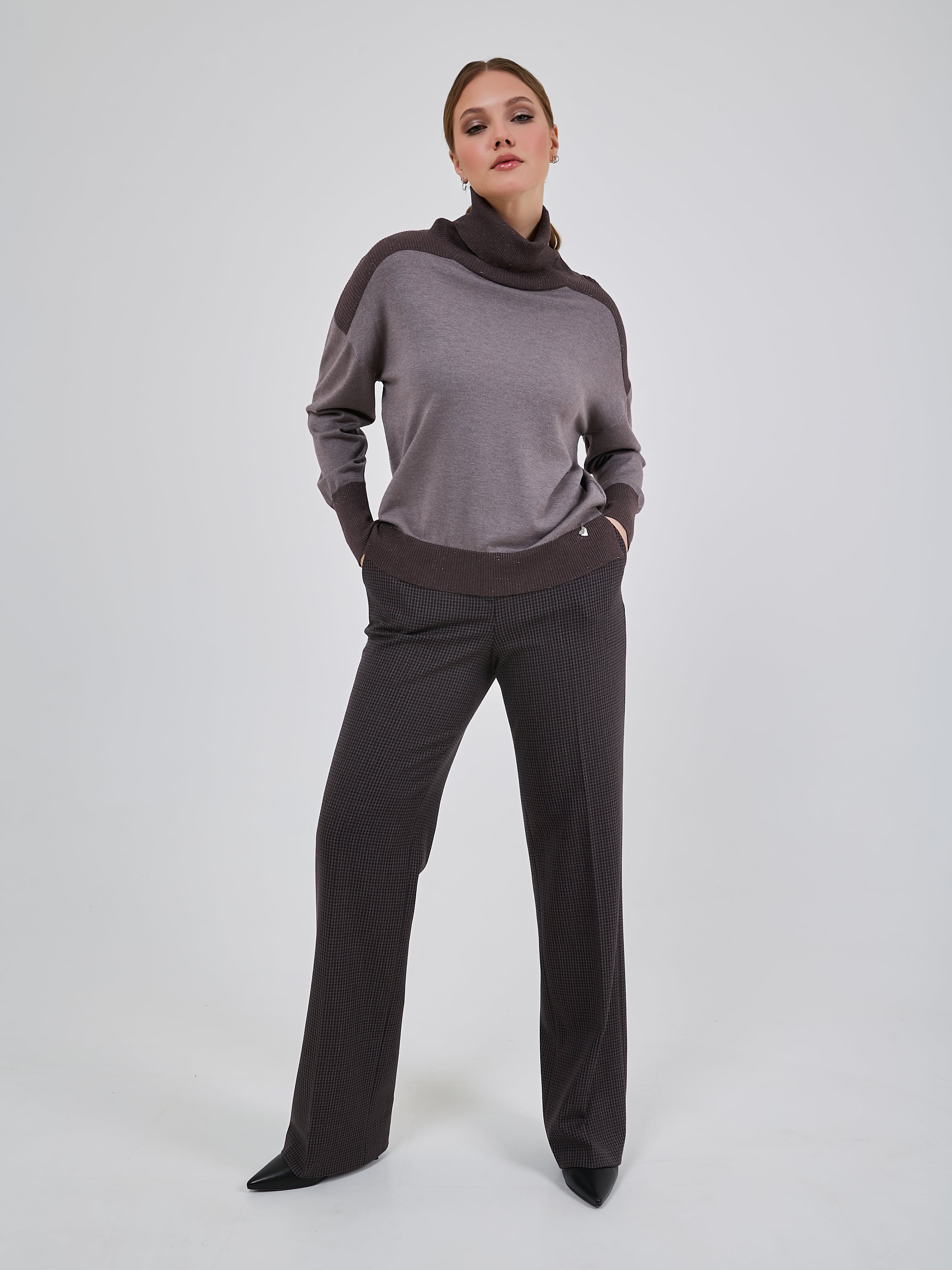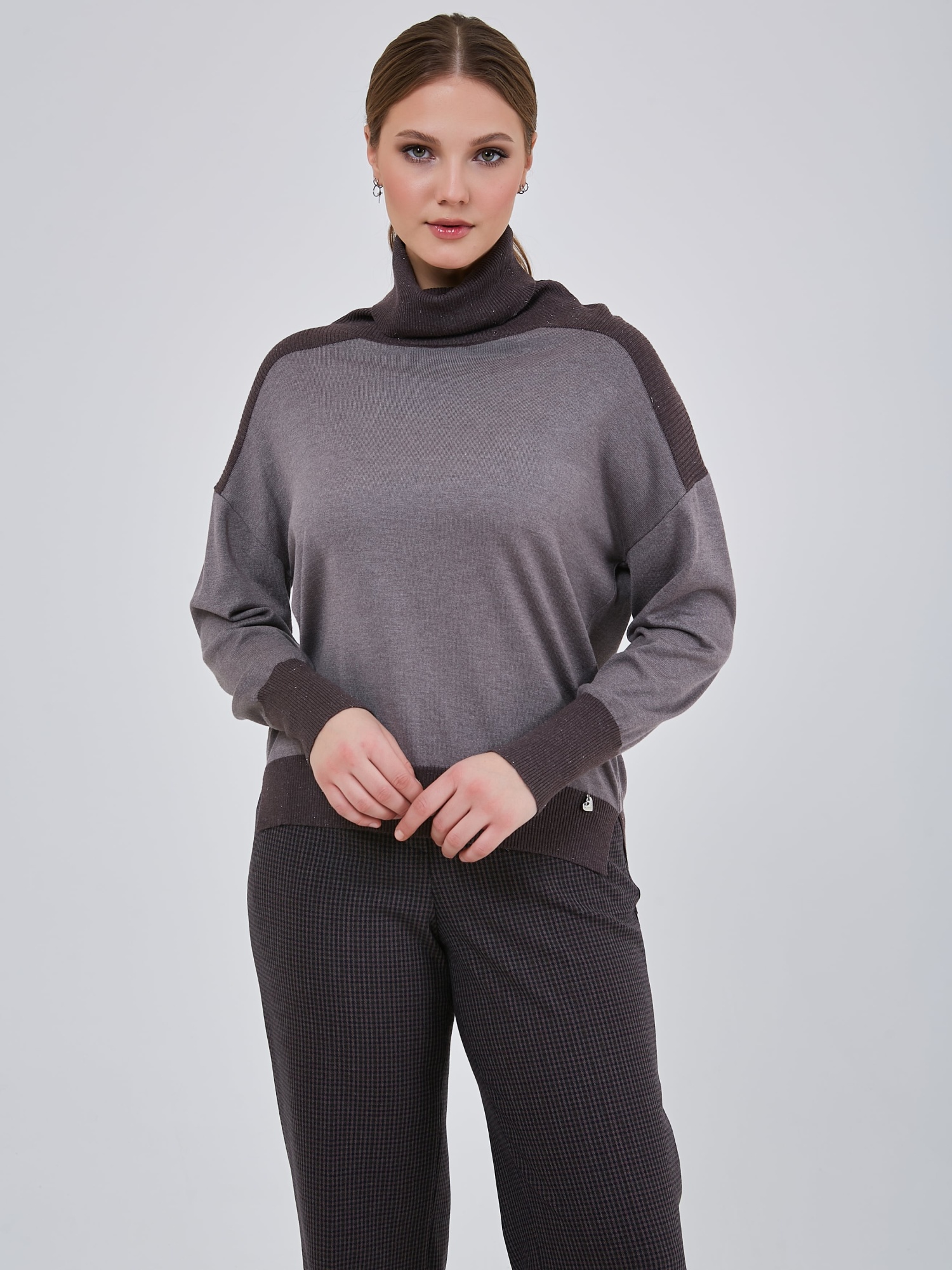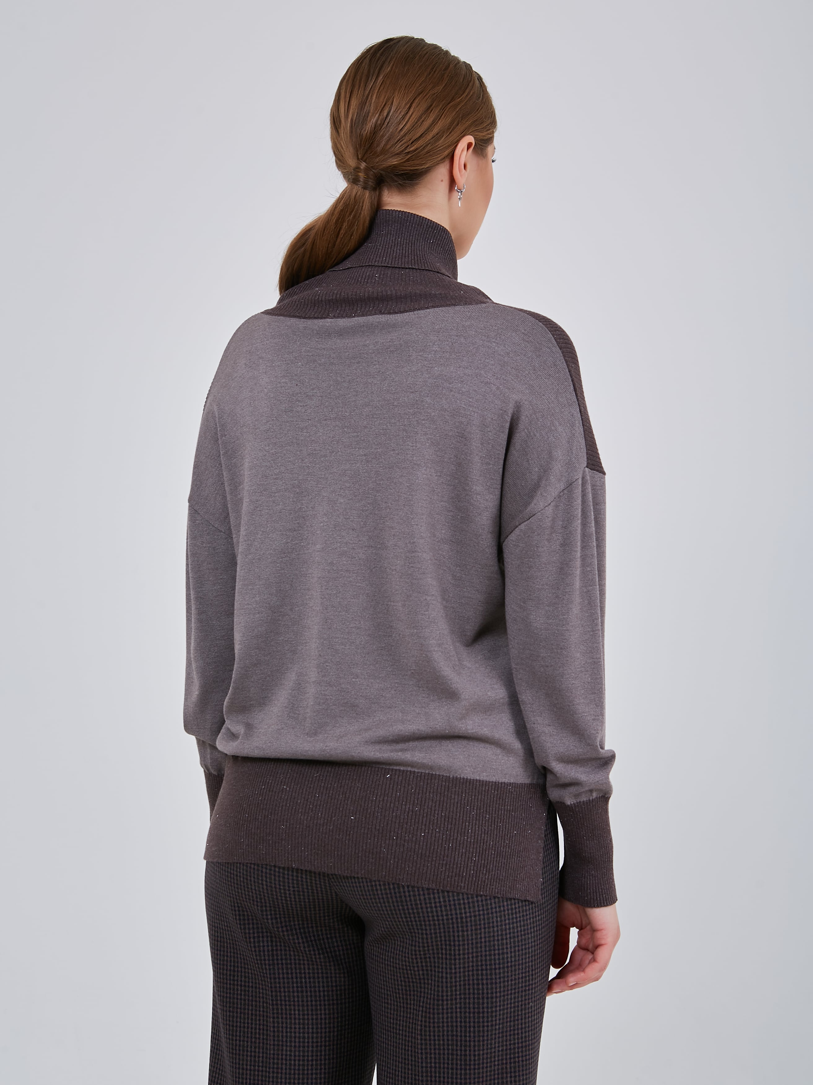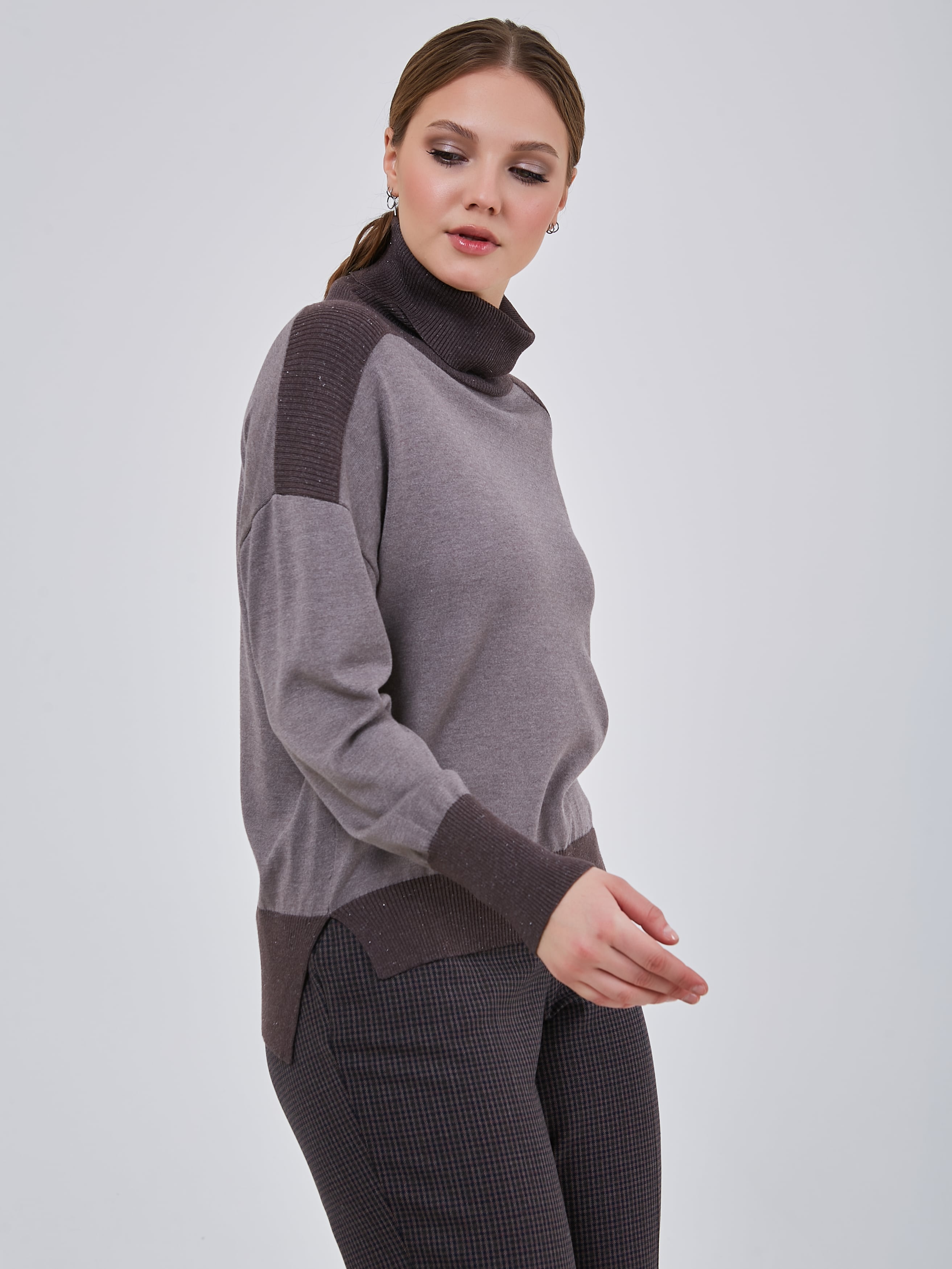 Оригинальный свитер с высоким воротом и акцентами по линии плеч и бёдер и манжет.Осень-Зима'25/26. Капсула "Вино из одуванчиков"