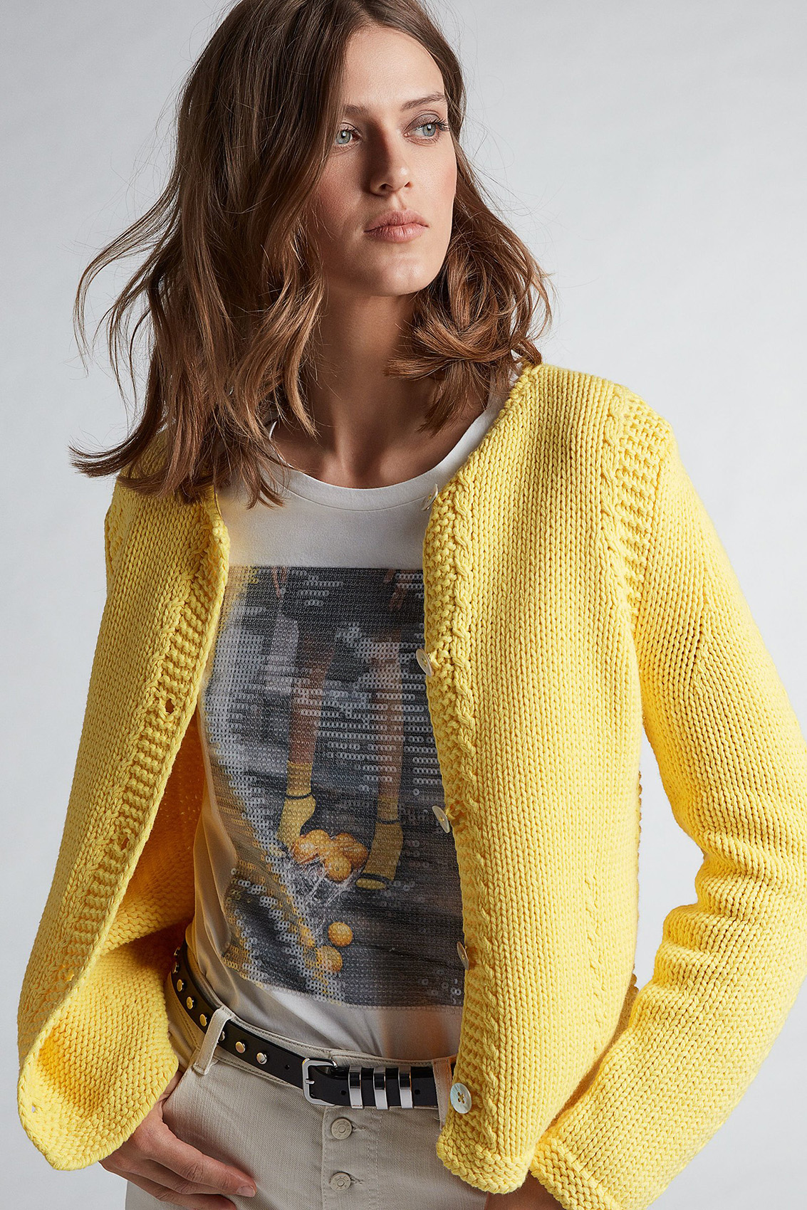 Футболка прямого покроя. Круглый вырез горловины, короткие рукава. Контрастный принт обращает на себя внимание, а пайетки привносят нотку гламура. Хлопковый материал приятен к телу и обеспечивает комфорт. Эта футболка - отличный вариант верха для множества стильных образов.