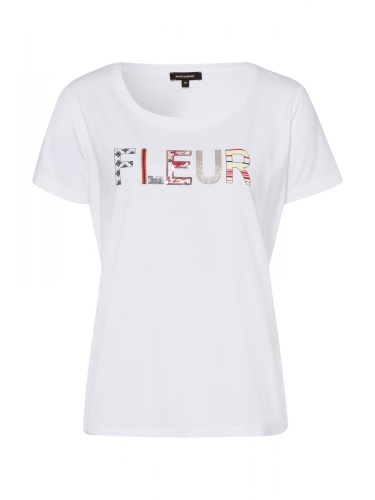 Белая однотонная футболка из смесового хлопка украшена принтом-надписью, Короткий втачной рукав, овальный вырез горловины. Футболка может служить самостоятельным верхом в теплую погоду или надеваться под блейзер, жакет или кардиган.