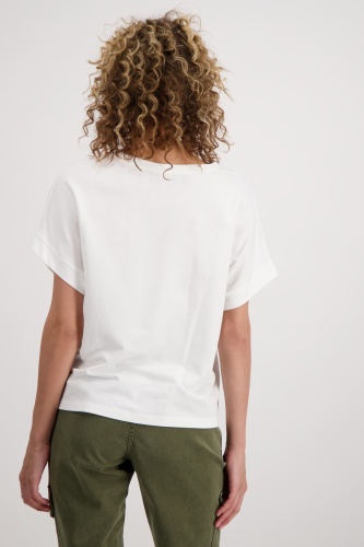 На сайте указаны российские размеры. Футболка из джерси с половиной рукавов, круглым вырезом и принтом. Сочетание контрастных букв из сверкающих стразов, блесток и глянцевого лакированного принта в сочетании с двумя контрастными цветными принтами спереди делает рубашку из джерси monari вашим новым любимым компаньоном. Форма: прямой крой со вставкой и оверлочным швом в тон по круглому вырезу горловины и предполагаемому, накладывающемуся короткому рукаву с манжетами на концах рукавов. Сочетание высококачественного хлопка и модала также гарантирует комфорт в течение всего дня. Модель ростом 176 см. Длина спины 44 размера составляет 62 см.