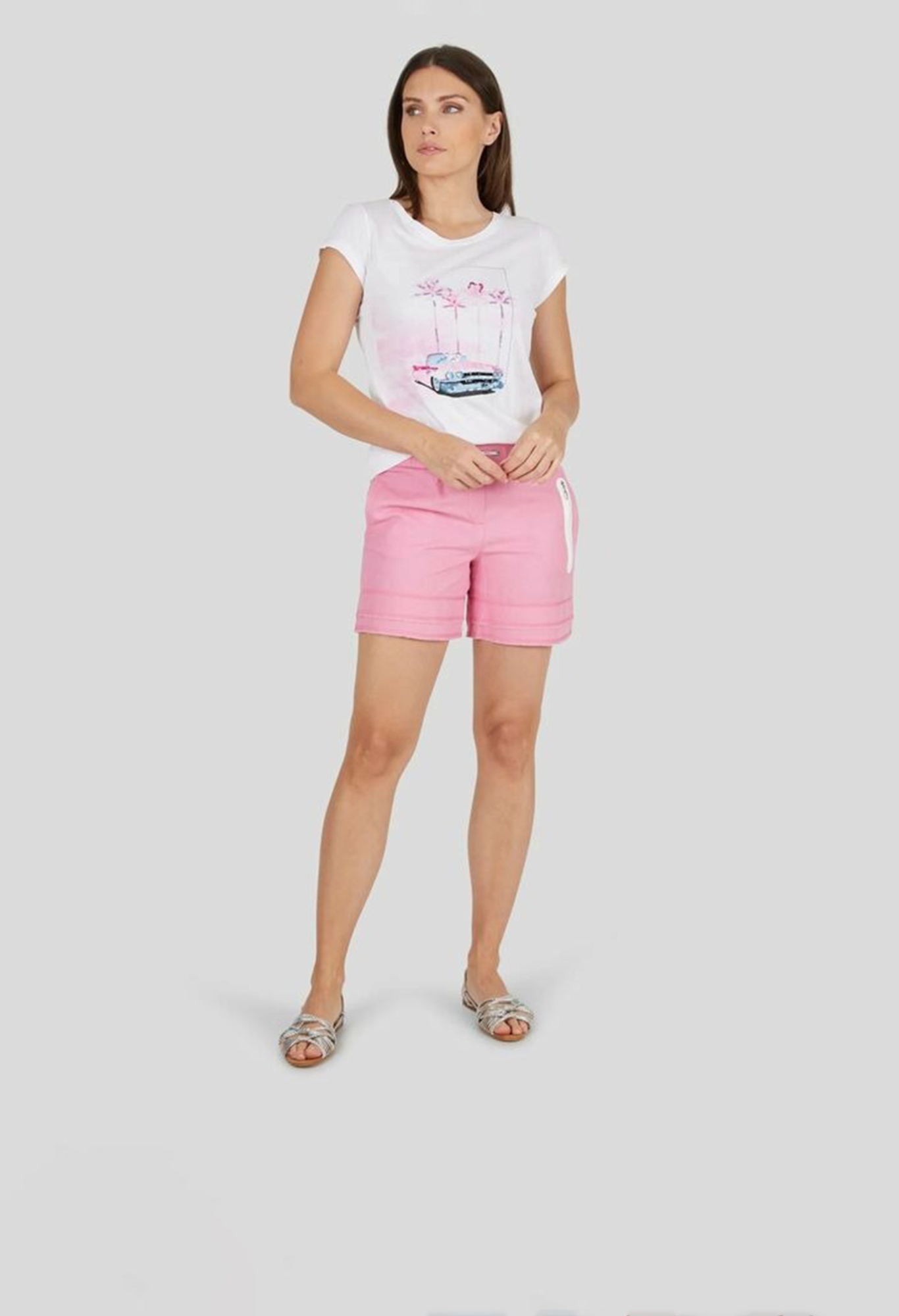 На сайте указаны Российские размеры. Классическая футболка с коротким рукавом и ипринтом с машиной и пальмами. Принт расшит различными бисером и пайетками.