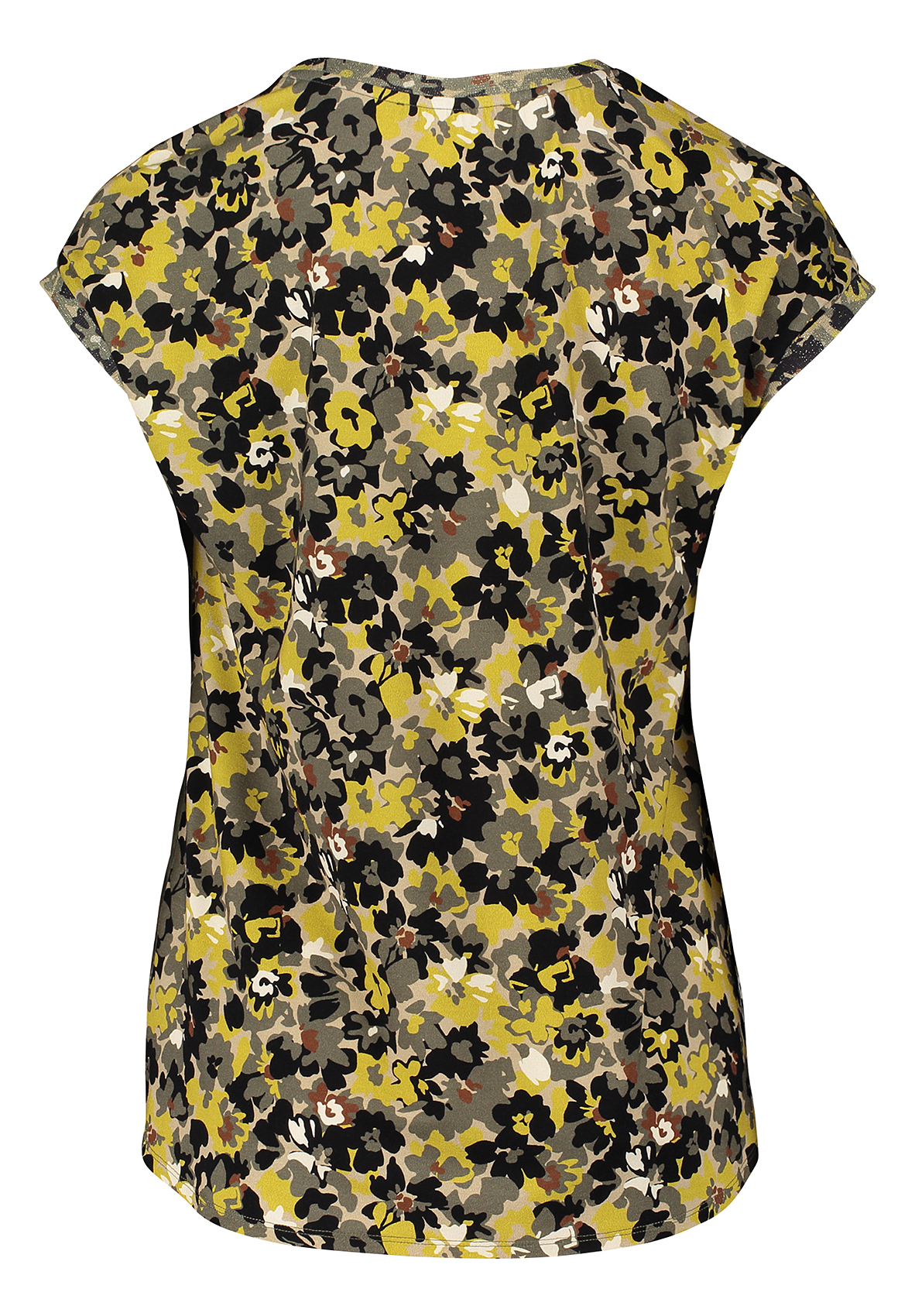 Эта футболка обращает на себя внимание эклектичным принтом с цветочными мотивами. Металлизированные элементы придают легкий блеск. Другие особенности дизайна - свободный покрой, вырез горловины "лодочка", короткие цельнокроеные рукава. Приятный к телу материал из вискозной смеси обеспечивает комфорт.