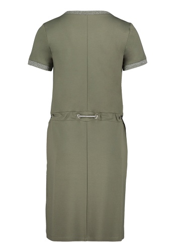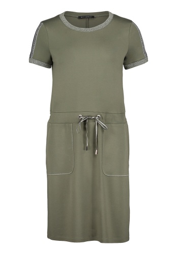Платье в спортивном стиле - то, что нужно для создания современного и женственного образа. Прямой крой, круглый вырез горловины, короткие втачные рукава, кулиска на талии, карманы спереди. Отделка с нитью люрекса оттеняет спортивный стиль платья и придает образу глубину. Приятный к телу материал из вискозной смеси обеспечивает комфорт.