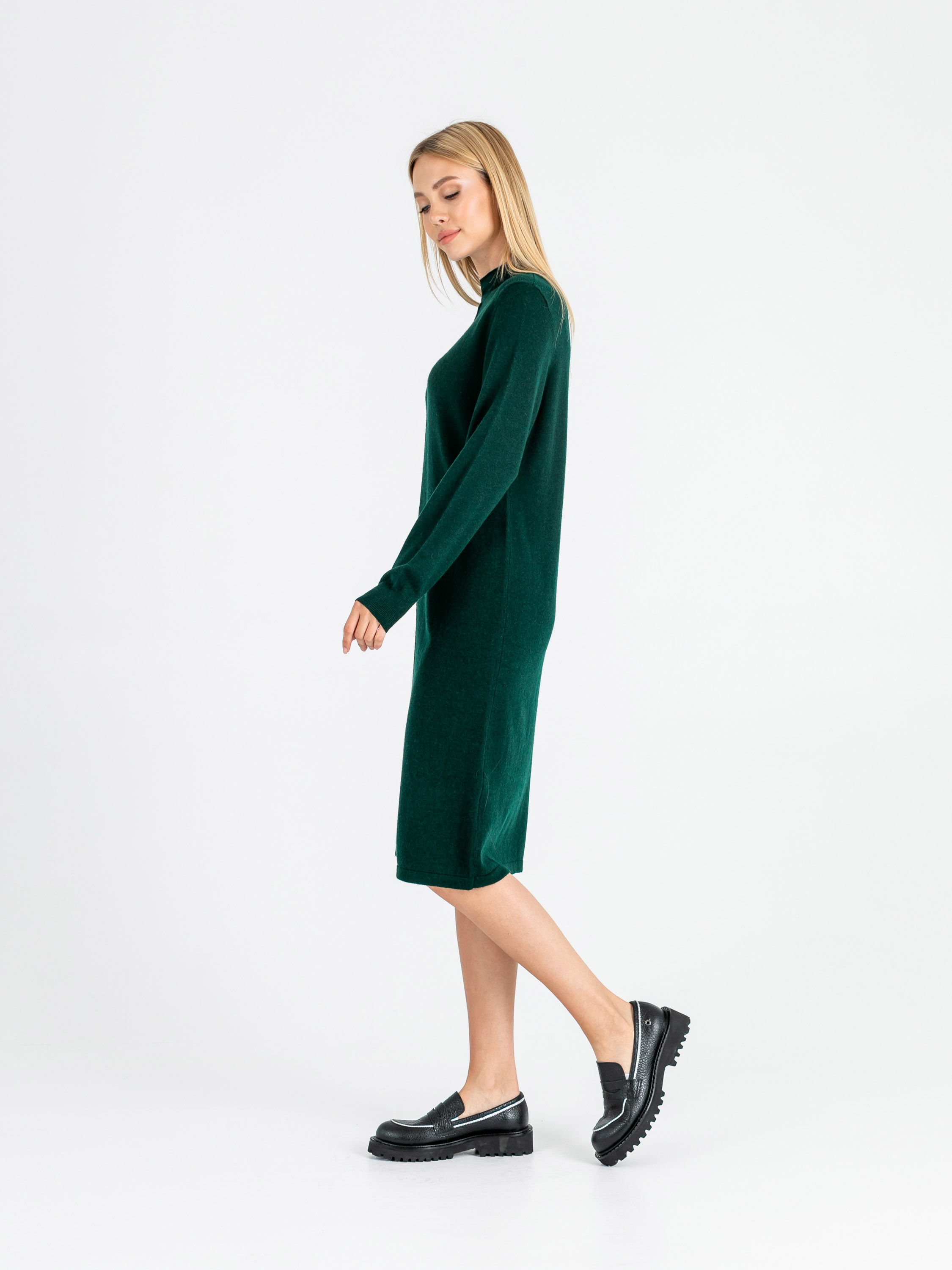 На сайте указаны российские размеры. Крой: теплое платье из плотного трикотажа прямого силуэта с длинным рукавом. Длина рукава регулируется при помощи манжета на резинке. Длина ниже колена, насыщенный изумрудный цвет. Стильная базовая модель с круглым, слегка поднятым вырезом, прикрывающим часть шеи. Идеально сидит на разных фигурах и подчеркивает достоинства. Плотность материала позволяет нивелировать возможные недостатки в области живота, бедер и талии. Отделка: в задней части платья расположен фирменный шильдик, говорящий о вашем прекрасном вкусе. Фактурная полоса в центре платья создает дополнительную вертикаль, которая визуально делает силуэт более стройным и вытянутым. Сочетайте с высокими сапогами-трубами, ботинками на грубой подошве и спортивной обувью. Рост 177 см