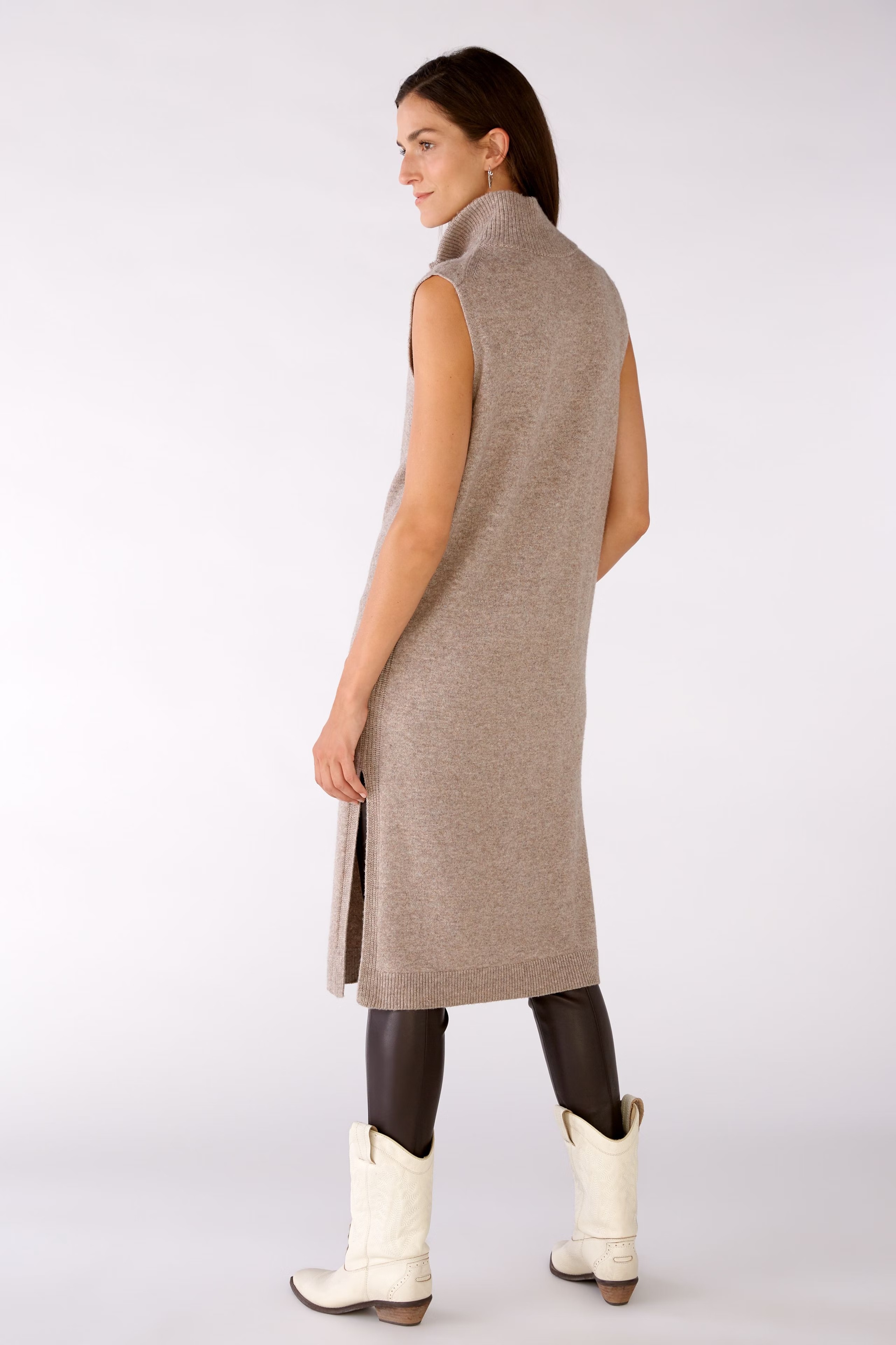 На сайте указаны российские размеры. Мягкое трикотажное платье OUI с модной деталью: воротником на молнии. Мягкая смесь шерсти, простой трикотаж. Повседневный крой со спущенными плечами, прямой трикотаж, длина миди. Двойной тройной воротник-стойка. Молния спереди, заканчивается воротником. Детали в рубчик и разрезы по бокам. Длина в размере 42: 102 см. Рост модели 178 см.