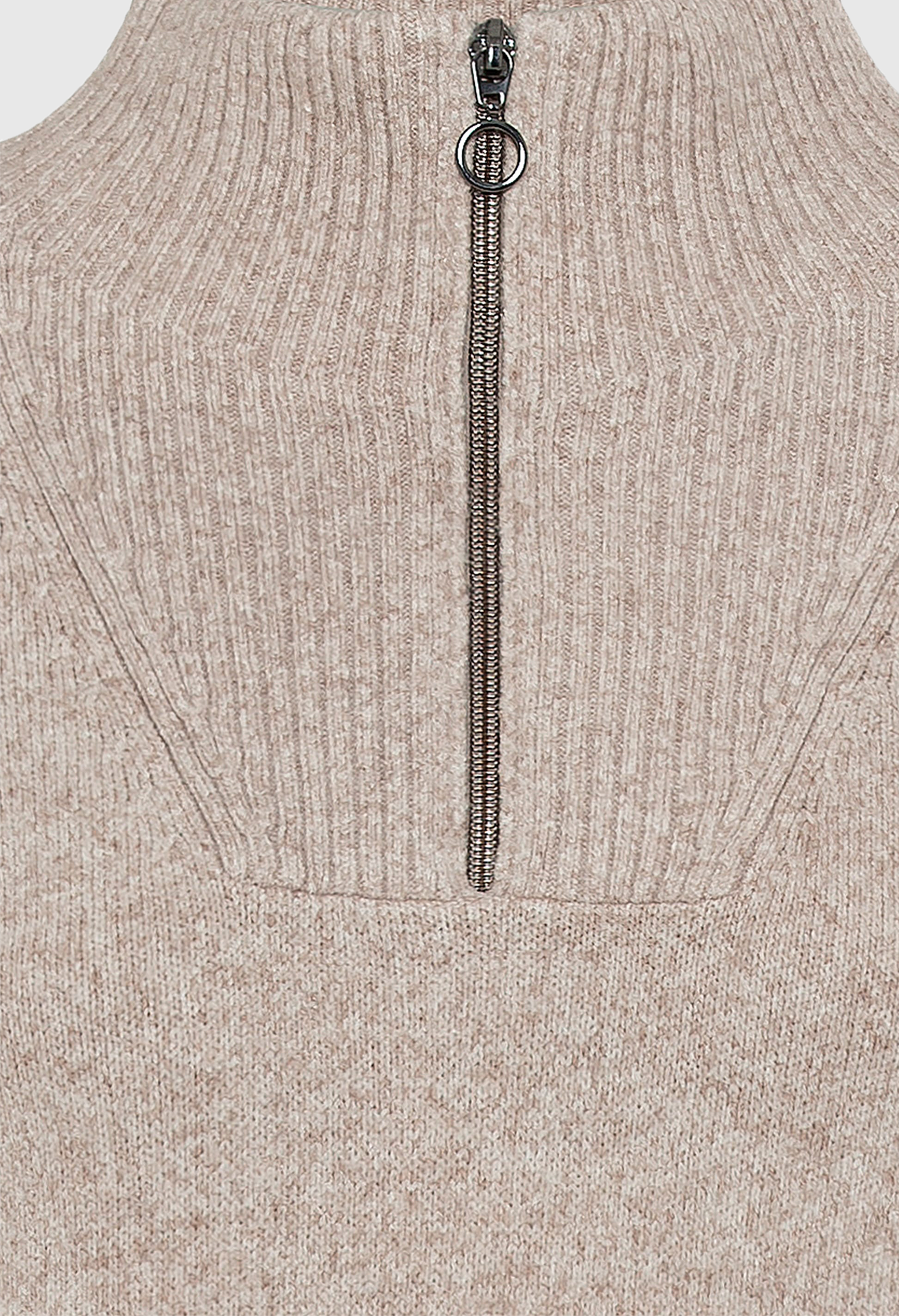 Пряжа создает очень мягкую поверхность классического платья-свитера. Ребристая вязка завершает боковые панели и отделку застежкой-молнией на четверть на шее. Нижняя часть миди с двумя разрезами по бокам.