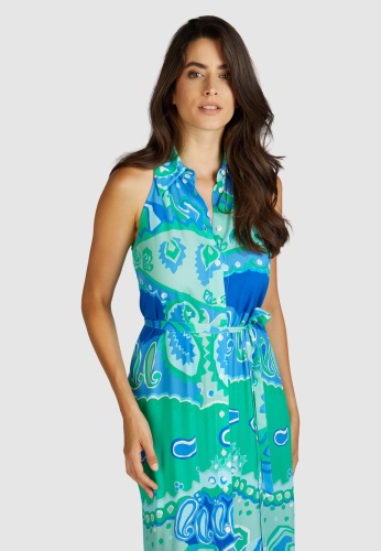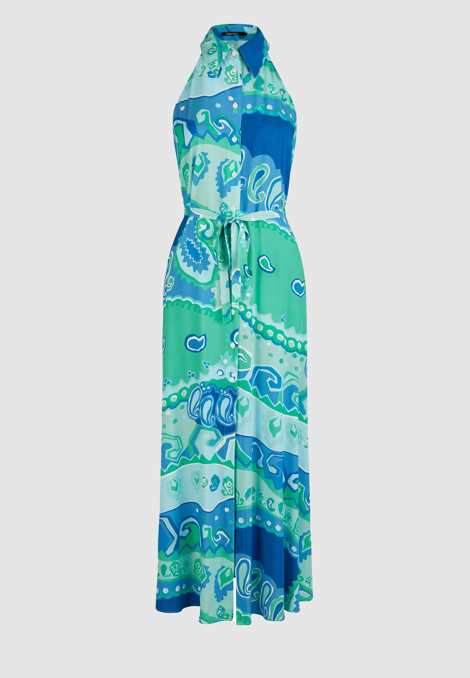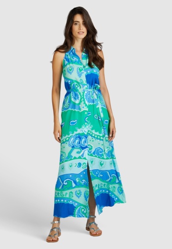 Платье макси, выполненное из особенно мягкой вискозы, обеспечивает максимальный комфорт. Модель повседневного кроя с классическим блузочным воротником и планкой на пуговицах во всю длину. Платье с модным тропическим принтом и практичным поясом станет незаменимым аксессуаром.