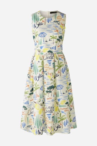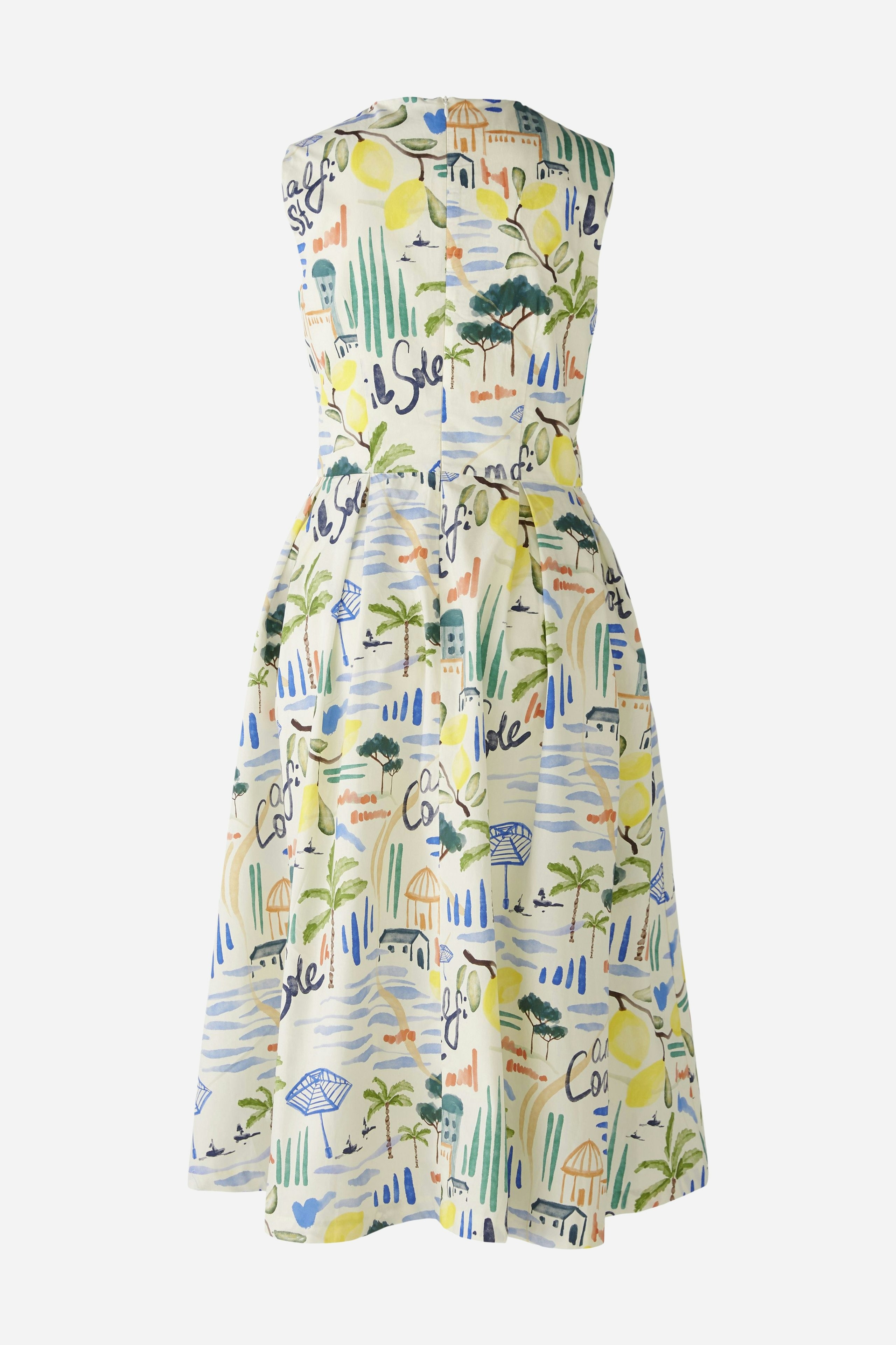Это летнее платье - эксклюзивный принт oui, вдохновленный типичной атмосферой отдыха на ривьере. Чистый хлопок, принт по всей поверхности. Приталенный топ в сочетании с расклешенной юбкой. Круглый вырез горловины с мелкошовной молнией сзади. Верх полностью на подкладке. Два боковых кармана. Длина для размера 42: 118 см.