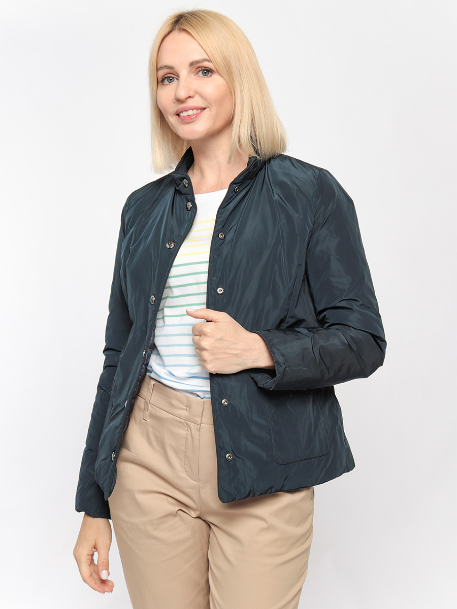 Стеганая куртка на кнопках идеально подойдет для межсезонья. Детали: - воротник-стойка на кнопке, - длинный втачной рукав с манжетой, - застежка на кнопки, - на стеганой стороне - 2 боковых кармана на кнопке, - на обратной стороне - 2 накладных кармана на кнопке.