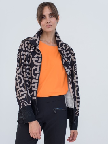 Женская олимпийка SPORTALM c оригинальным принтом по всей поверхности изделия. Воротник стойка, застежка на молнию, длинные втачные рукава с эластичным манжетами. Олимпийка дополнит образы в спортивном или повседневном городском стиле.