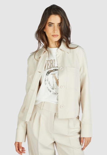 Элегантная куртка-рубашка из мягкой, легкой в уходе ткани. Воротник рубашки и накладные нагрудные карманы придают повседневному H-образному силуэту четкую структуру. Классическая планка на пуговицах и манжеты с разрезами подчеркивают прямой дизайн.