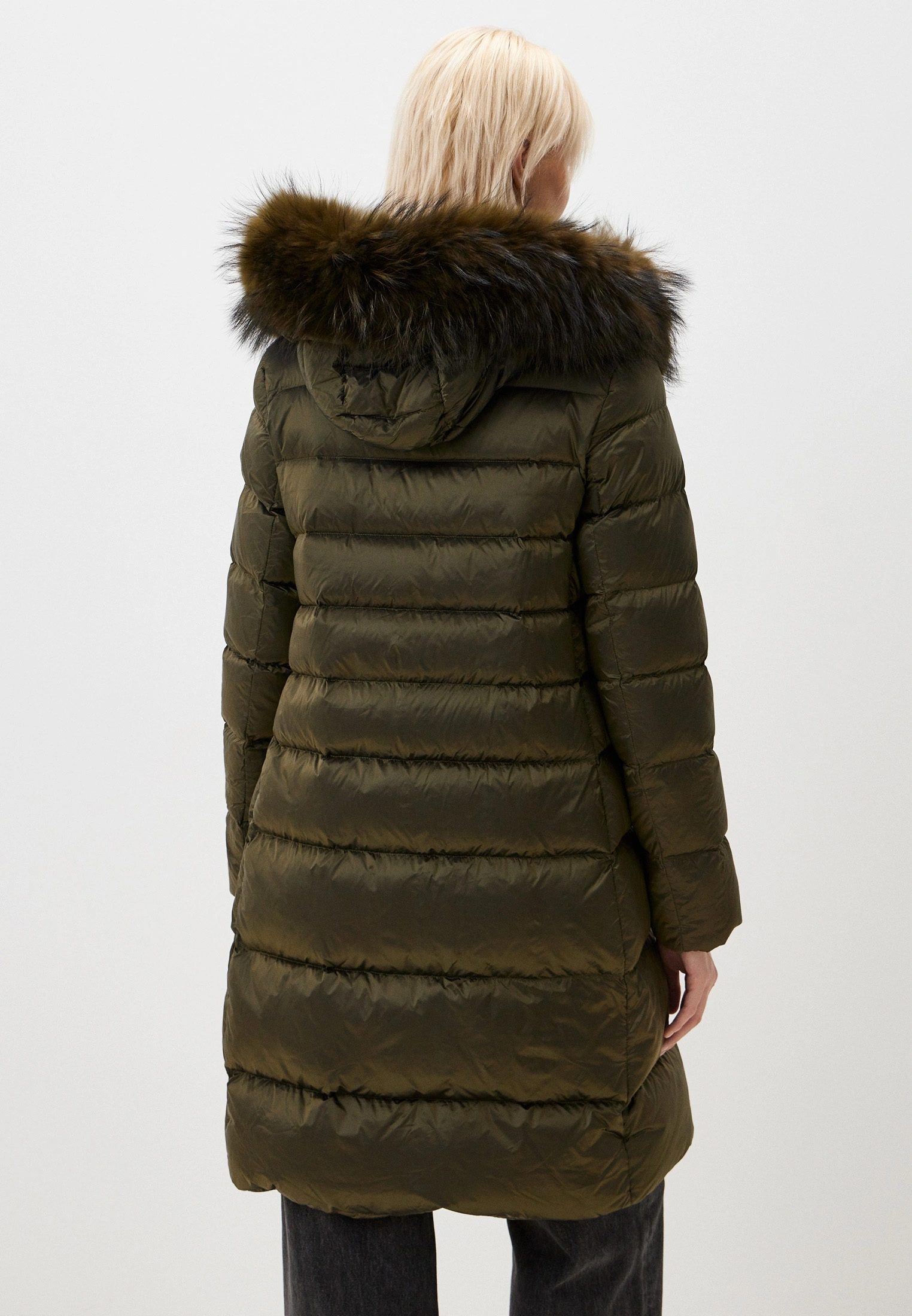 Зимний пуховик MADZERINI цвета хаки с опушкой на капюшоне.