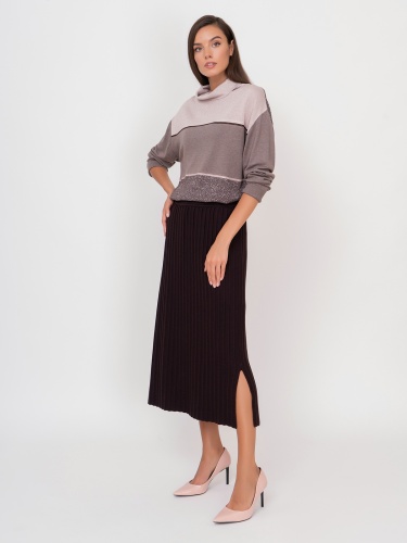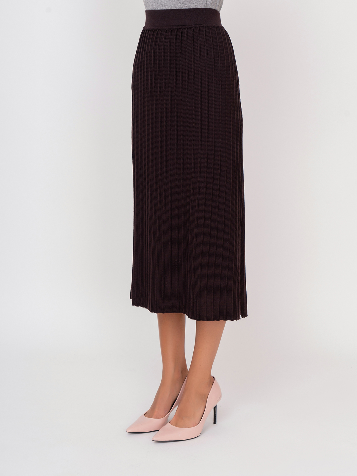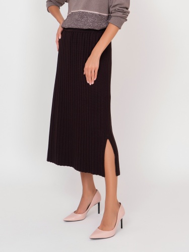 Однотонная трикотажная юбка в рубчик с разрезом. Комфортная посадка по естественной линии талии. Эластичный пояс обеспечивает удобство ношения.