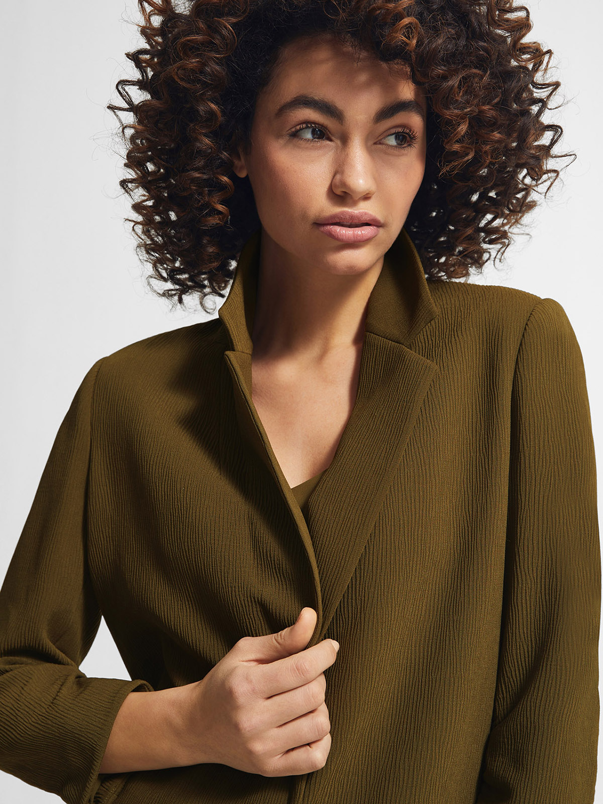 Блейзер прямого кроя на одной пуговице. Отложной английский воротник с лацканами.Врезные карманы с листочкой.