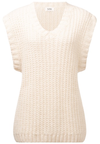 На сайте указаны российские размеры. Приятный мягкий свитер-жилет. С этой моделью из высококачественных материалов вы сможете создавать крутые образы в холодные дни. Благодаря V-образному вырезу слиповер идеально сочетается с блузой с отложным воротником или воротником-стойкой или со свитером с высоким воротником. Свободный крой в сочетании с ребристым вязанием и контрастным вязанием на рукавах, V-образном вырезе и по низу придают комбинезону спортивный и повседневный вид. Рост модели: 177 см. Измерения для 44 размера: Окружность груди: 57 см Бедра: 37 см Длина по спинке: 53 см Пройма: 25см